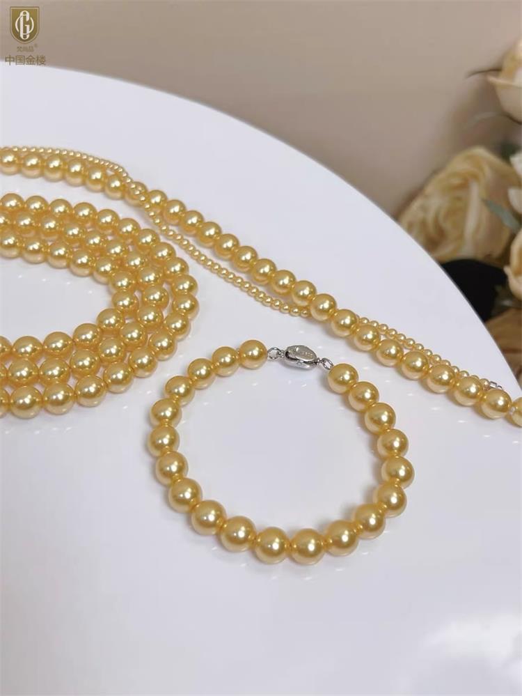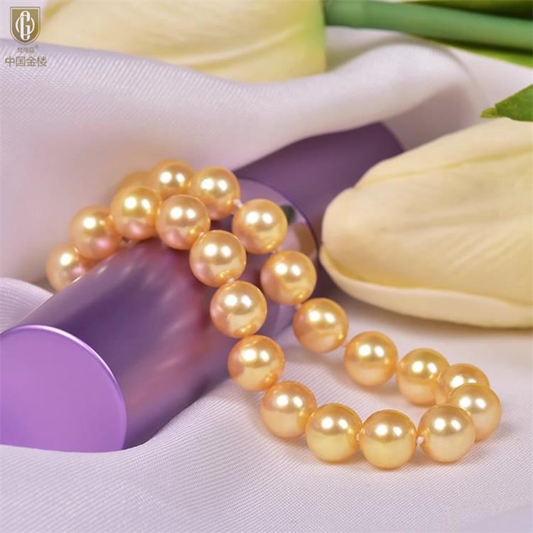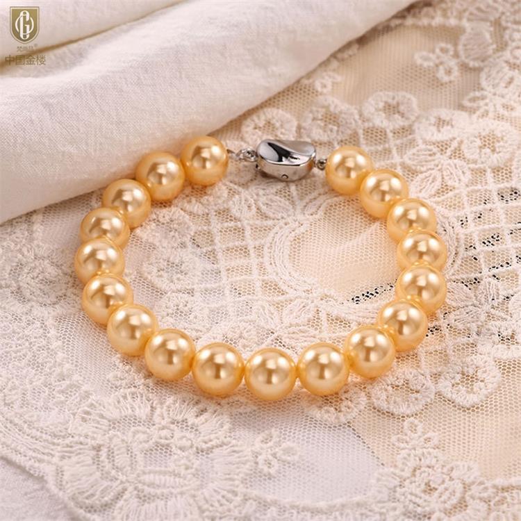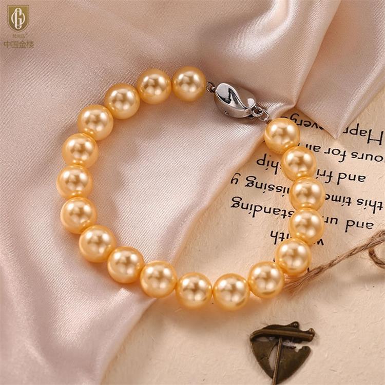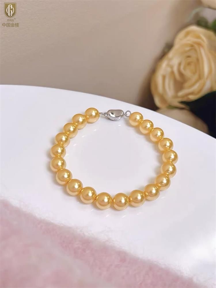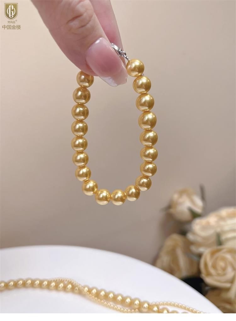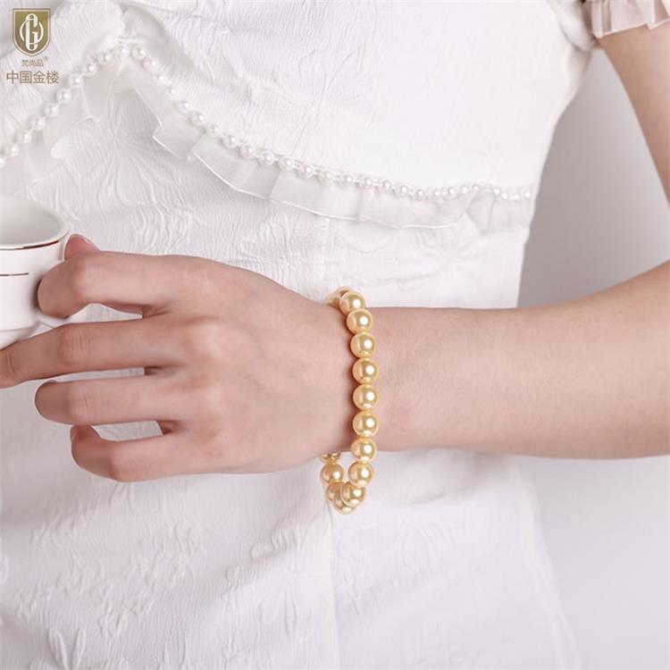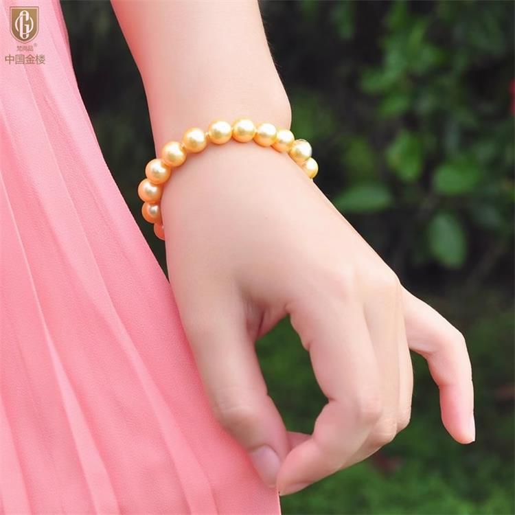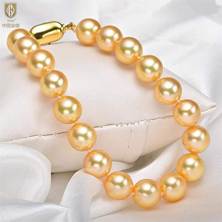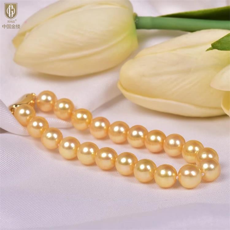 中国金楼梵尚品南洋进口正圆无暇全尺寸浓金珍珠手链ZZX41875821送礼送女友送长辈生日礼物