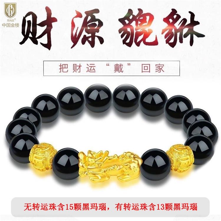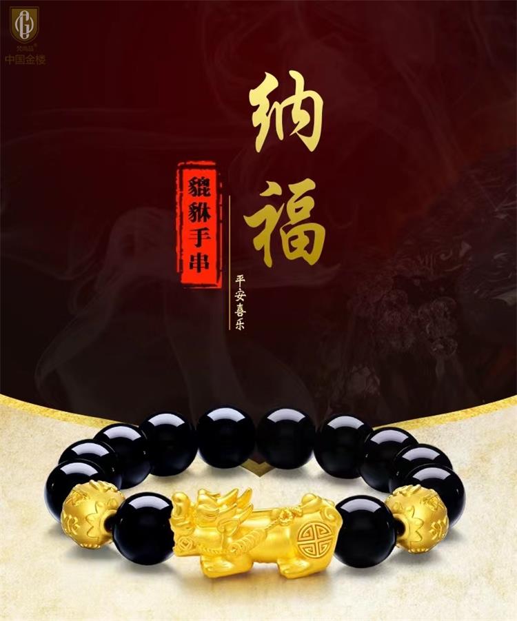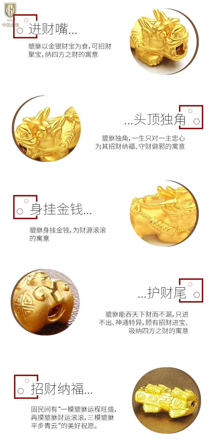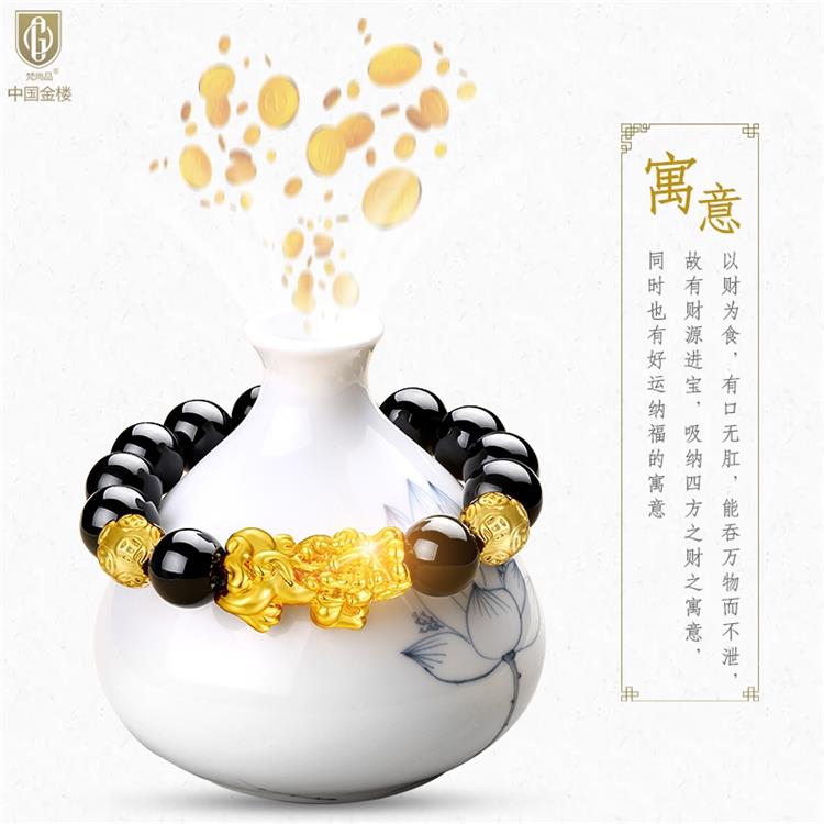 中国金楼梵尚品K金招财纳福貔貅转运手串HKZJ12544006送礼送女友送生日礼物(下单赠手机贴随机一个)