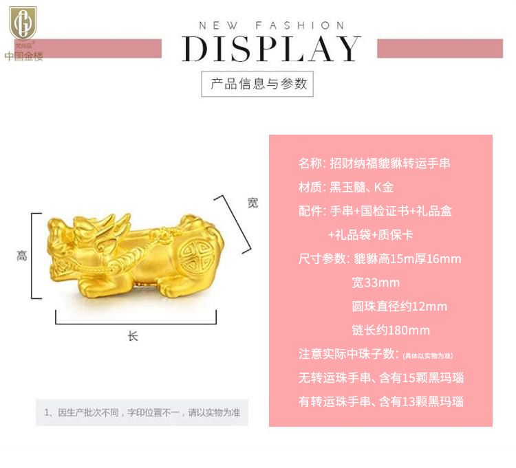 商品名称:中国金楼梵尚品K金招财纳福貔貅转运手串HKZJ12544006送礼送女友送生日礼物(下单赠手机贴随机一个)