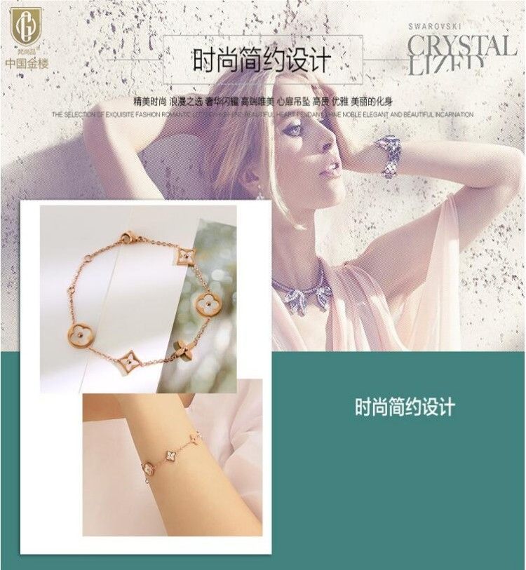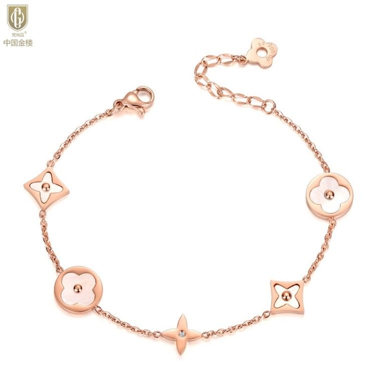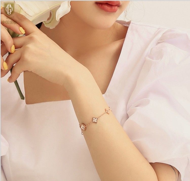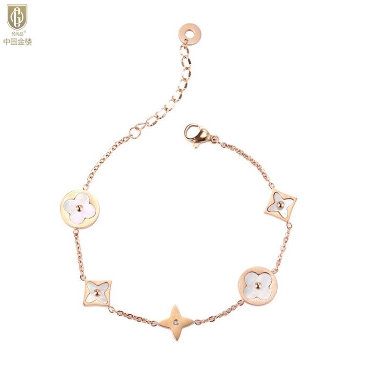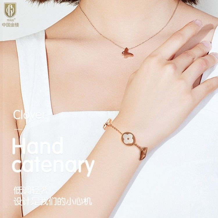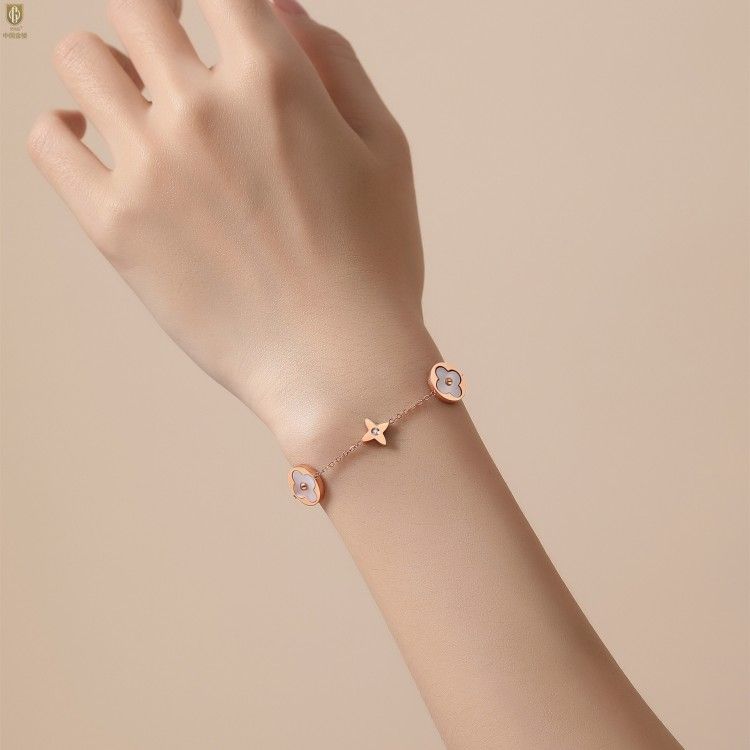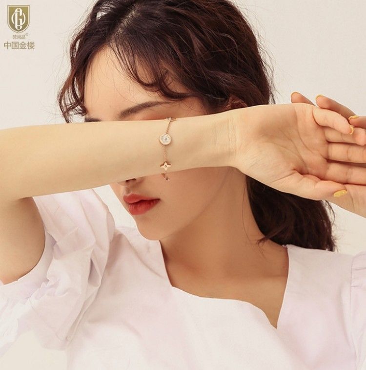 中国金楼梵尚品18KGP镶钻系列-四叶草全家福手链HKZLF06054送礼送女友(下单赠手机贴随机一个)