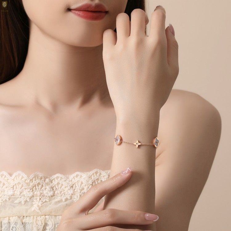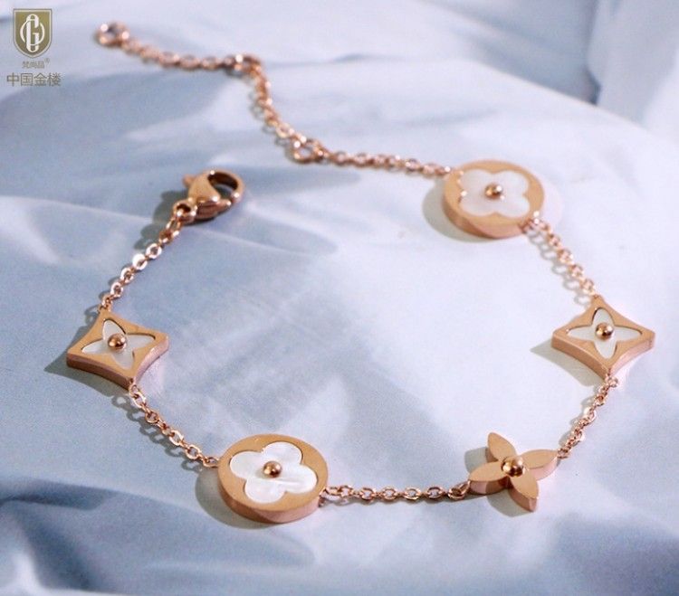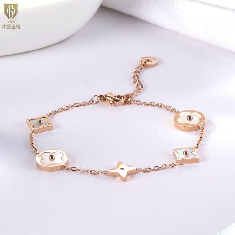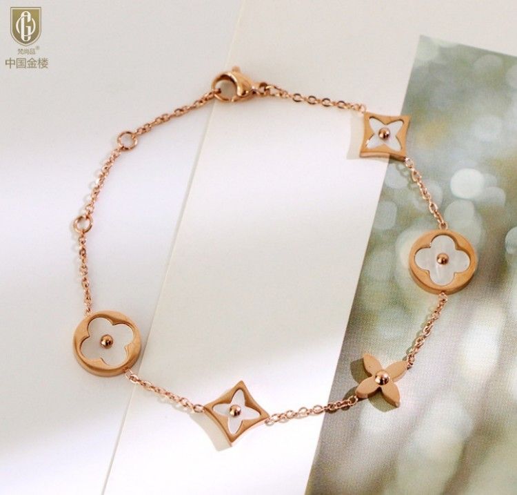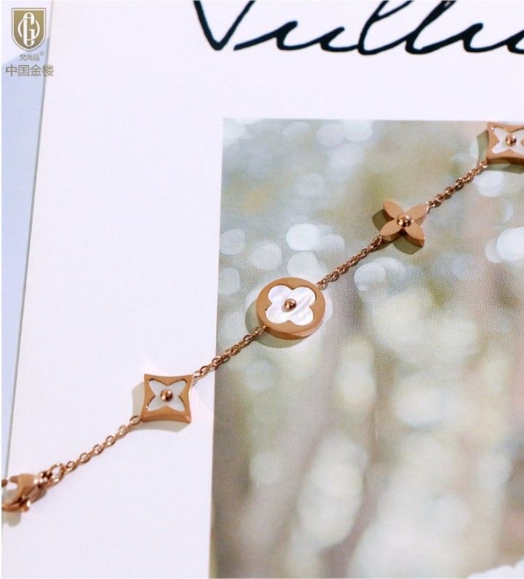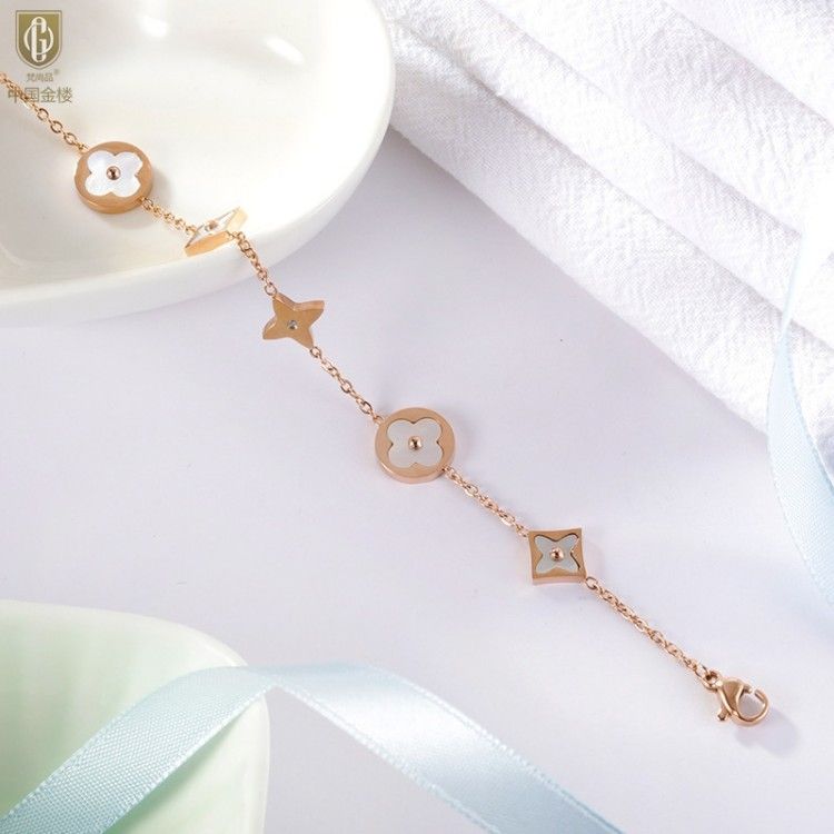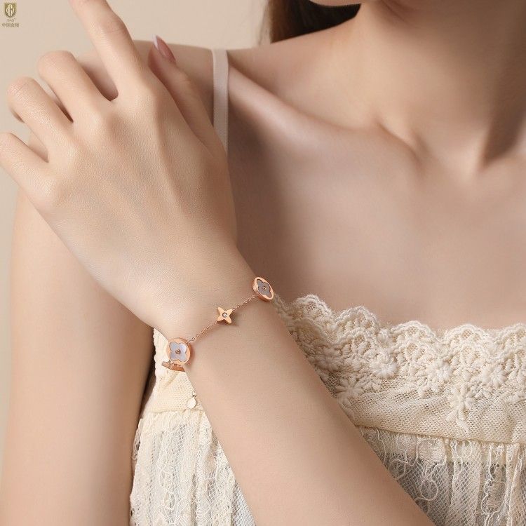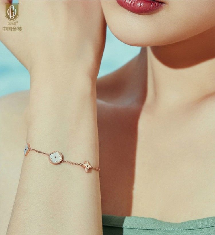 中国金楼梵尚品18KGP镶钻系列-四叶草全家福手链HKZLF06054送礼送女友(下单赠手机贴随机一个)