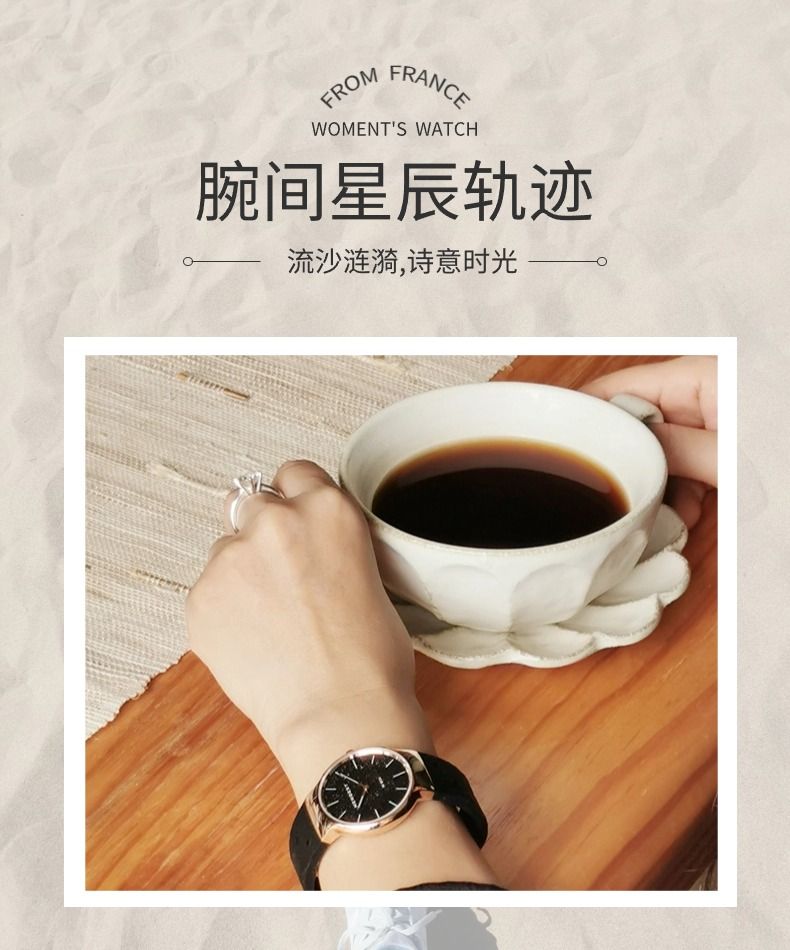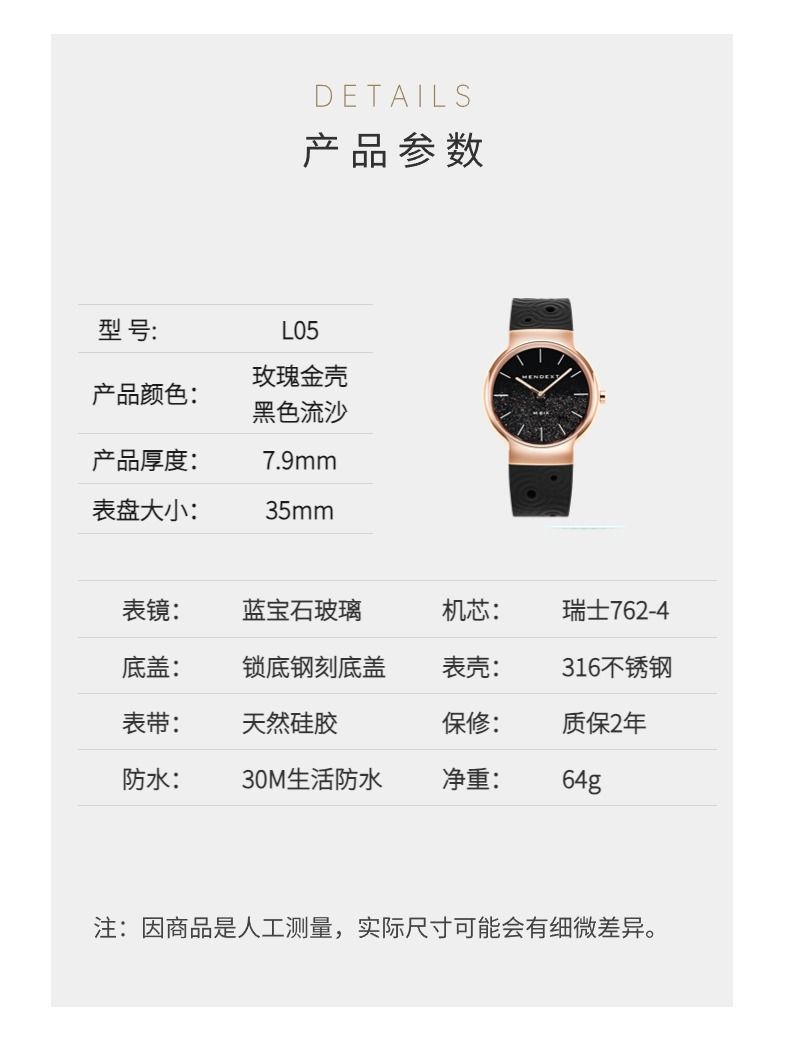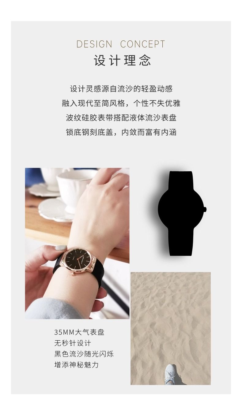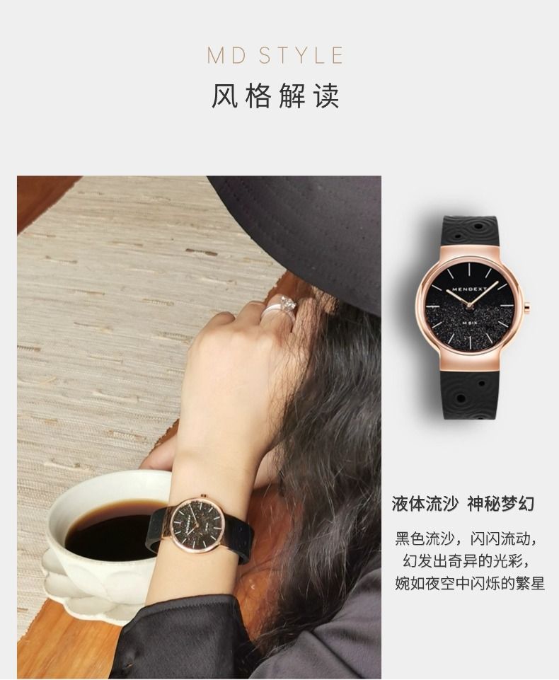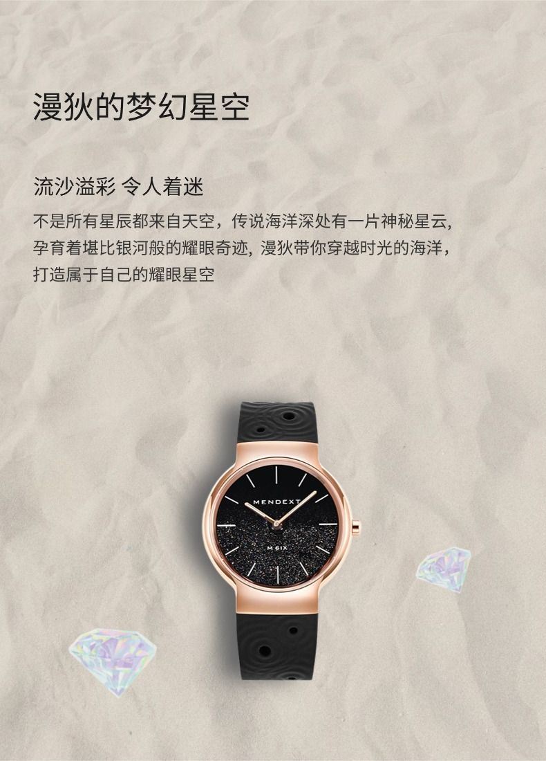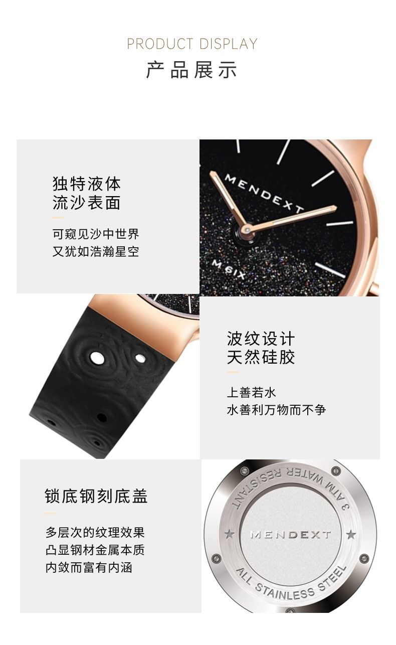 商品名称:MENDEXT漫狄黑色流沙面 IP镀玫瑰色表壳 黑色表带M6IX-L05女士学生腕表手表