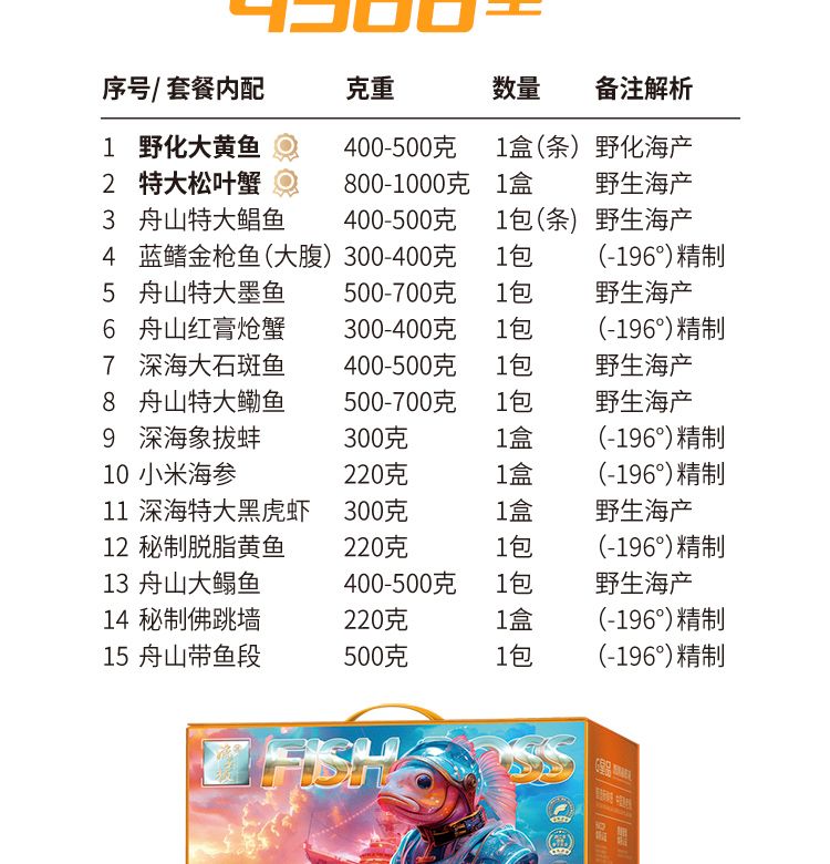 商品名称:渔老板G皇品4588型(总重量6960g)