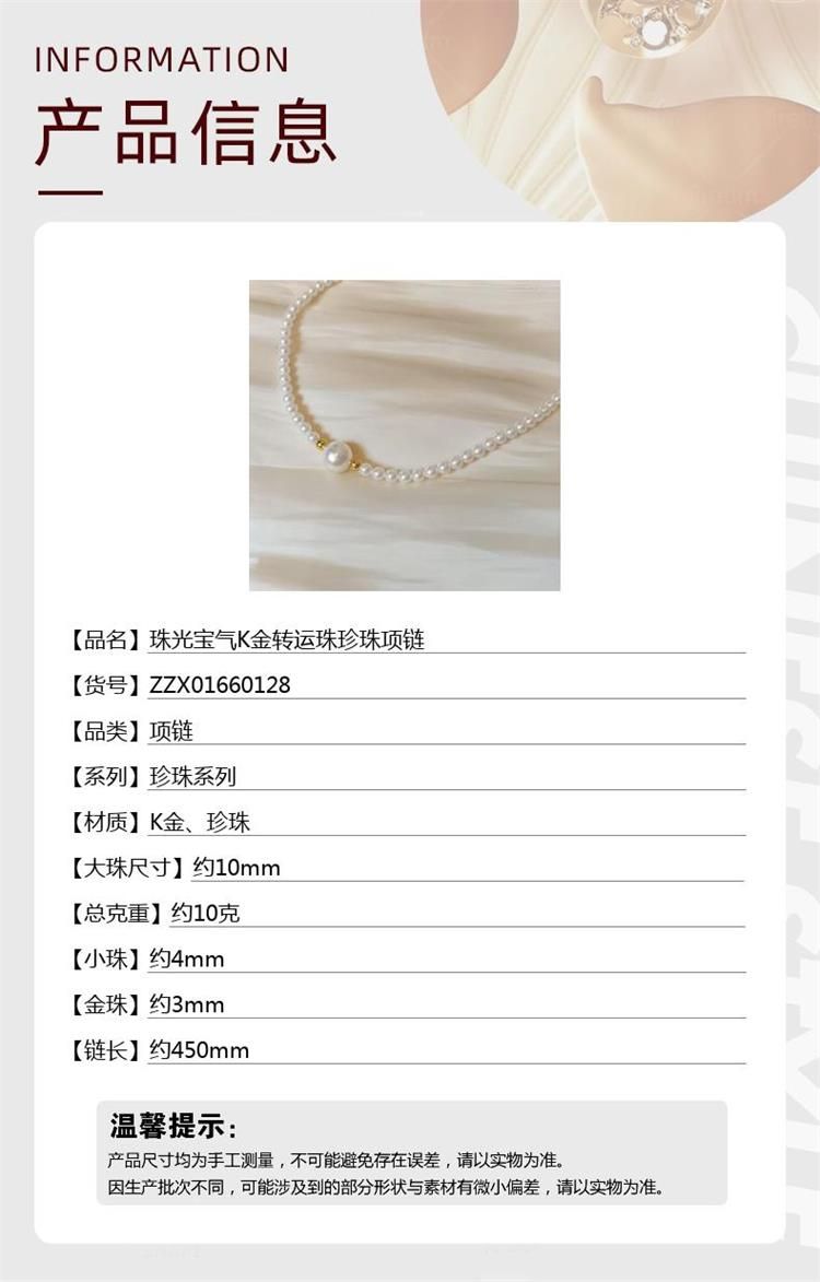 商品名称:中国金楼梵尚品珠光宝气K金转运珠珍珠项链ZZX01660128送礼送女友送长辈生日礼物(下单赠手机贴随机一个)