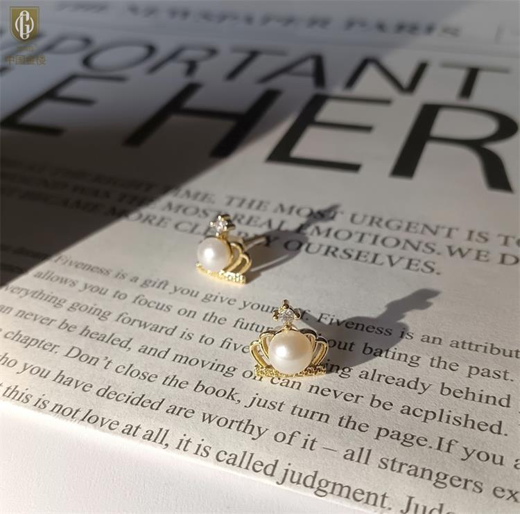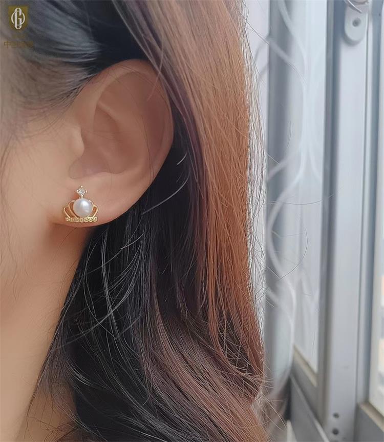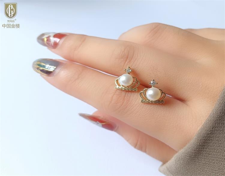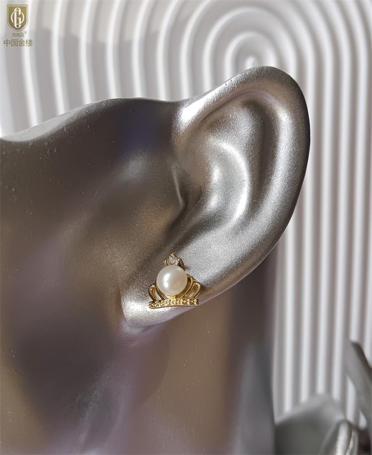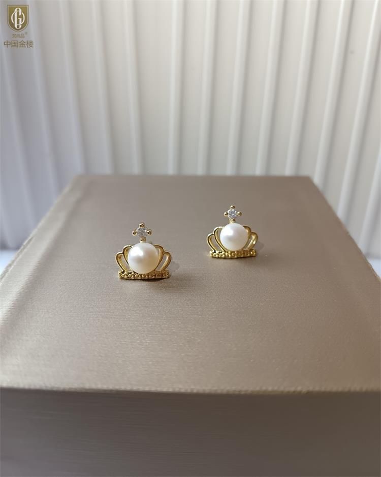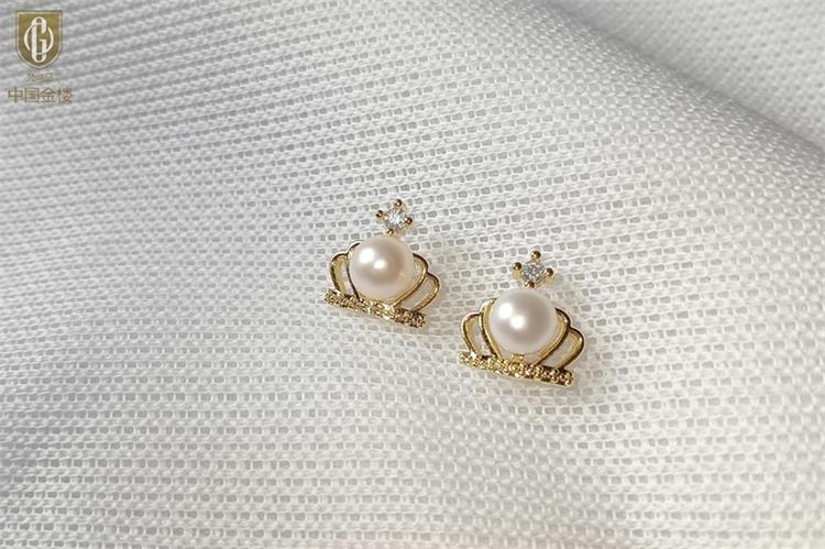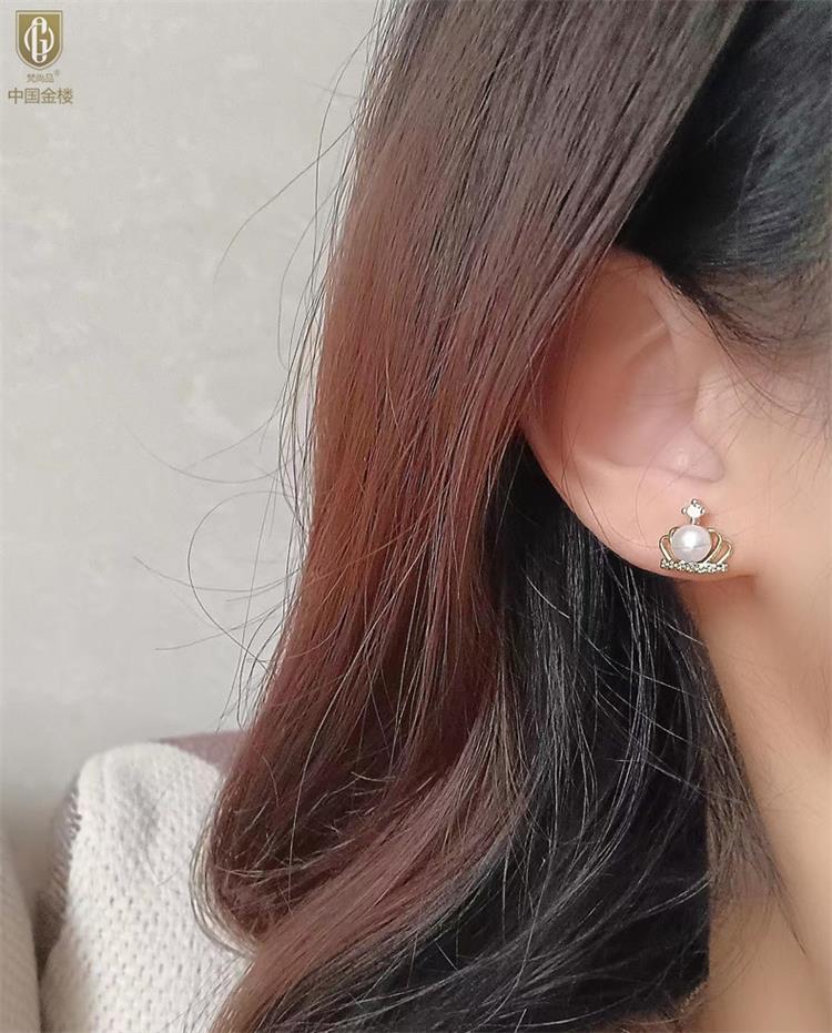 中国金楼梵尚品天然珍珠镶钻公主皇冠耳钉(对)ZZX12494210送礼送女友送长辈生日礼物