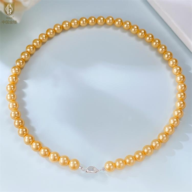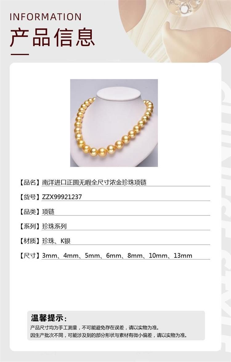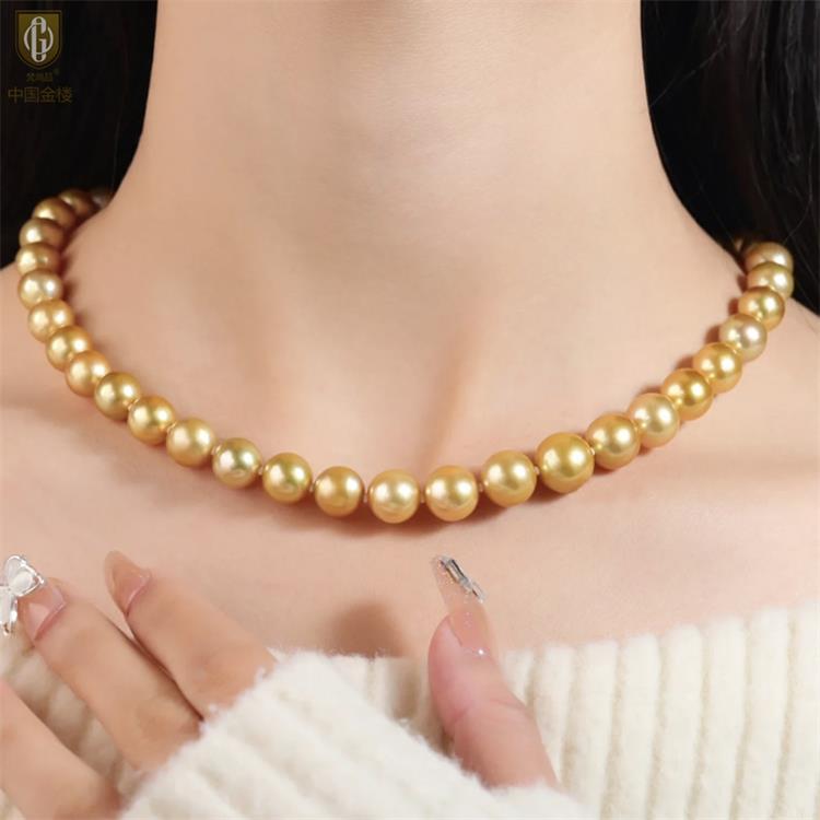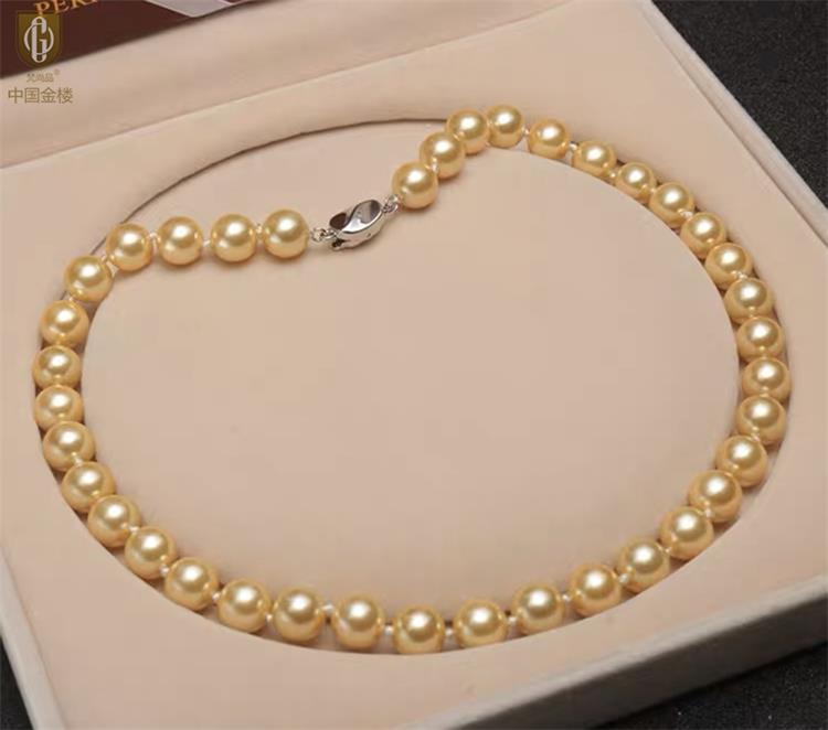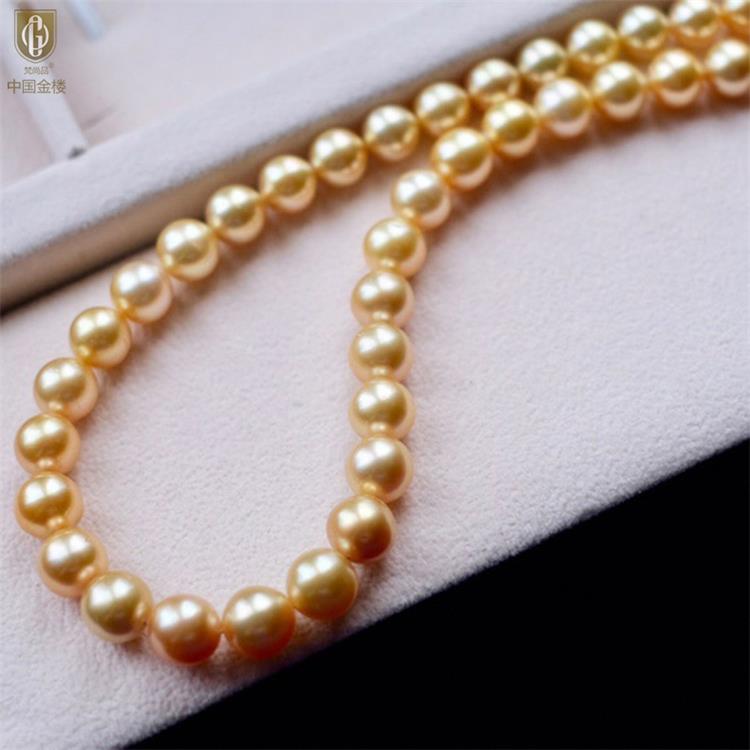商品名称:中国金楼梵尚品南洋进口正圆无暇全尺寸浓金珍珠项链ZZX99921237送礼送女友生日礼物(下单赠手机贴随机一个)