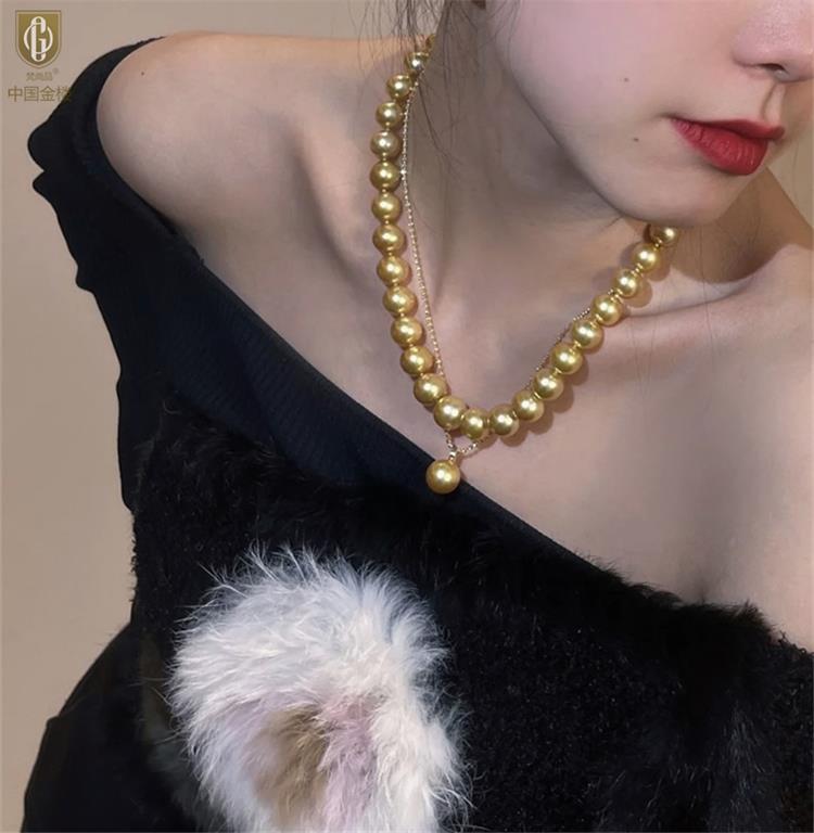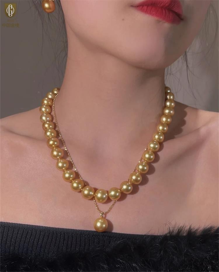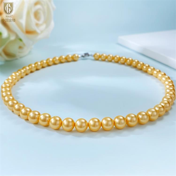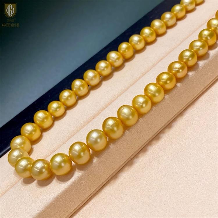 中国金楼梵尚品南洋进口正圆无暇全尺寸浓金珍珠项链ZZX99921237送礼送女友生日礼物(下单赠手机贴随机一个)