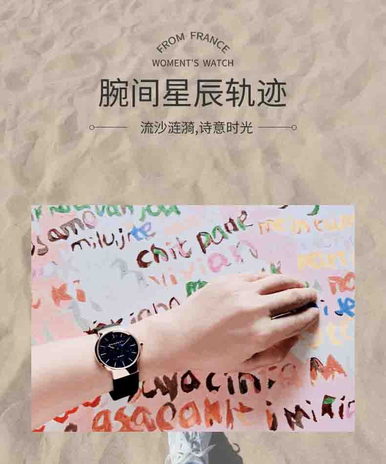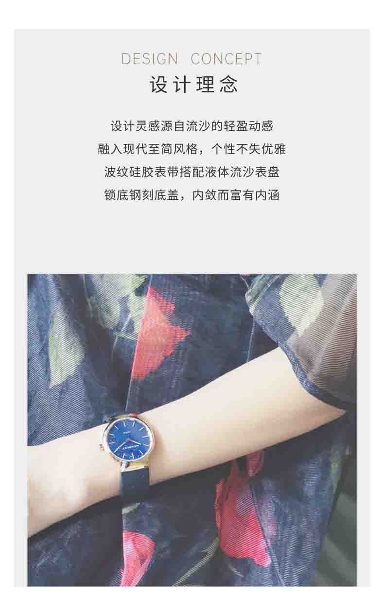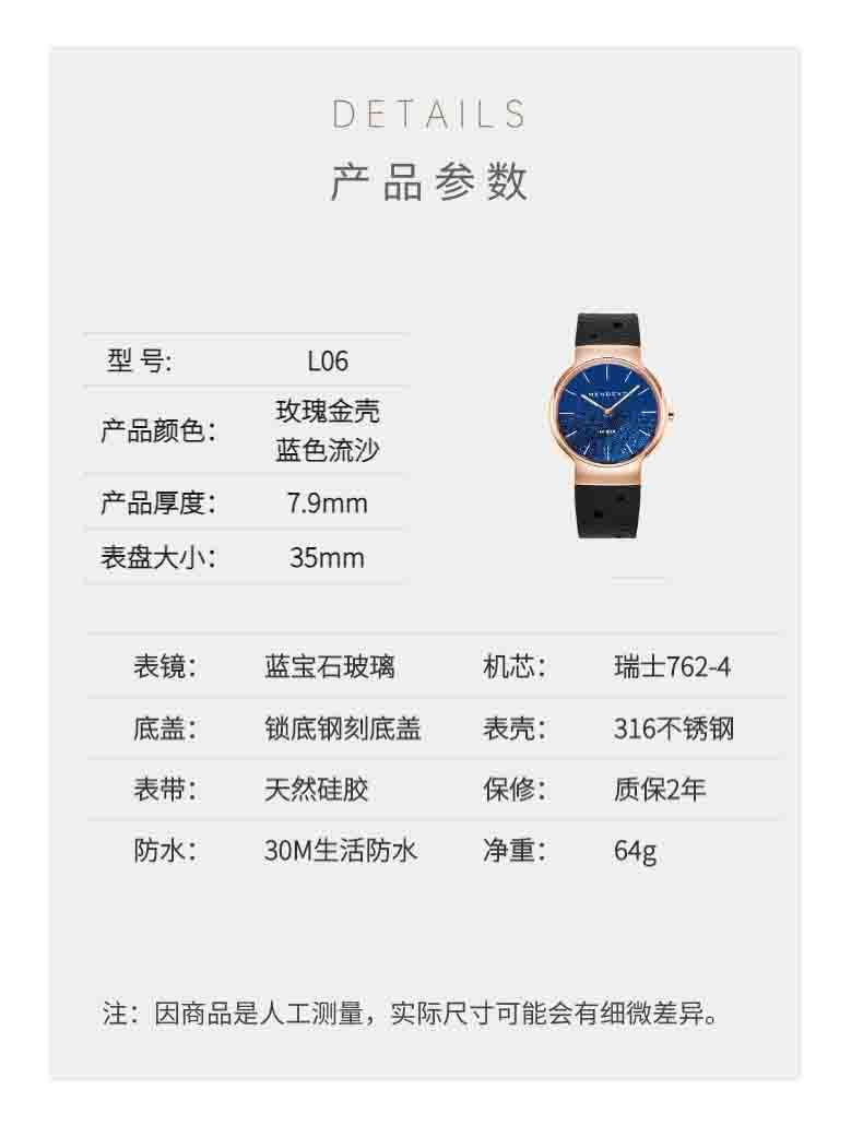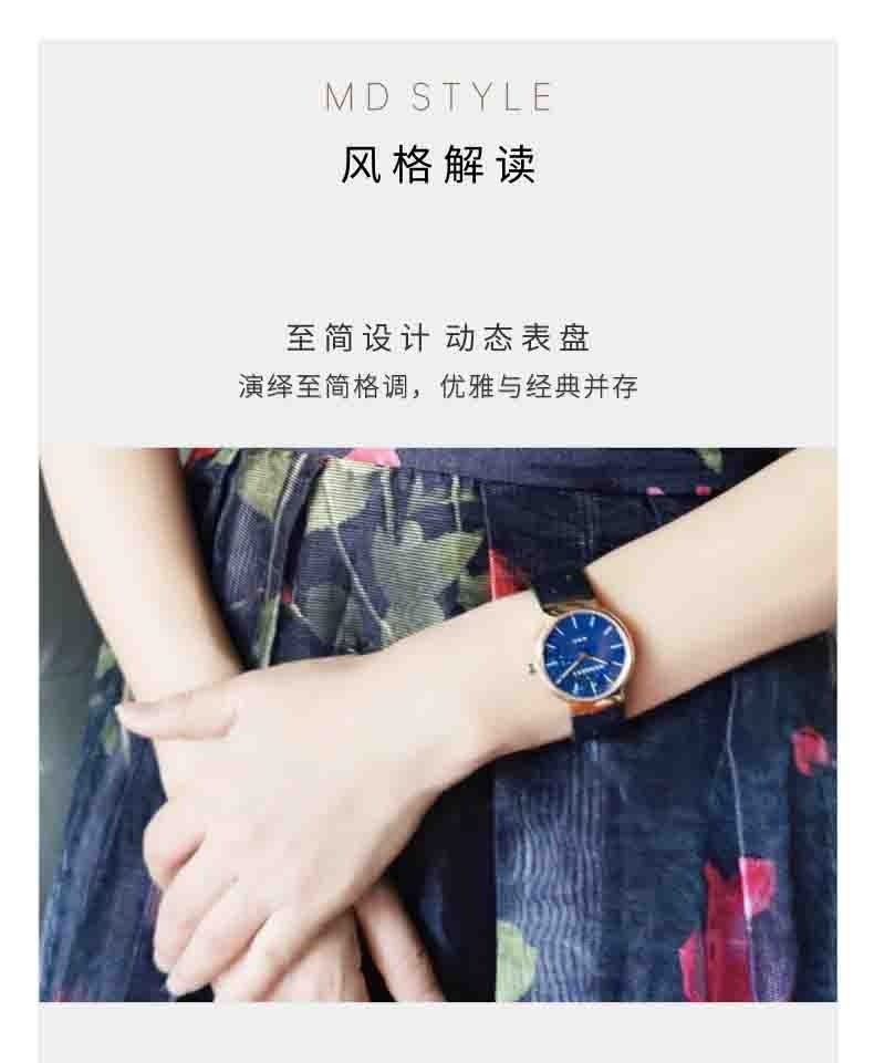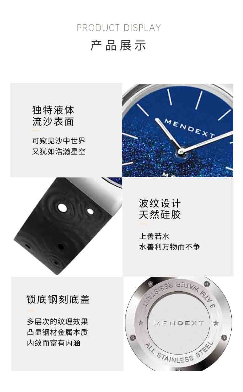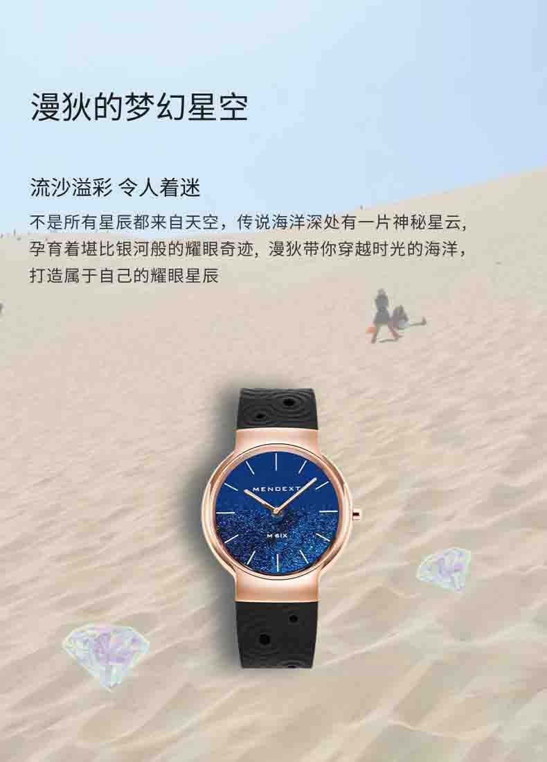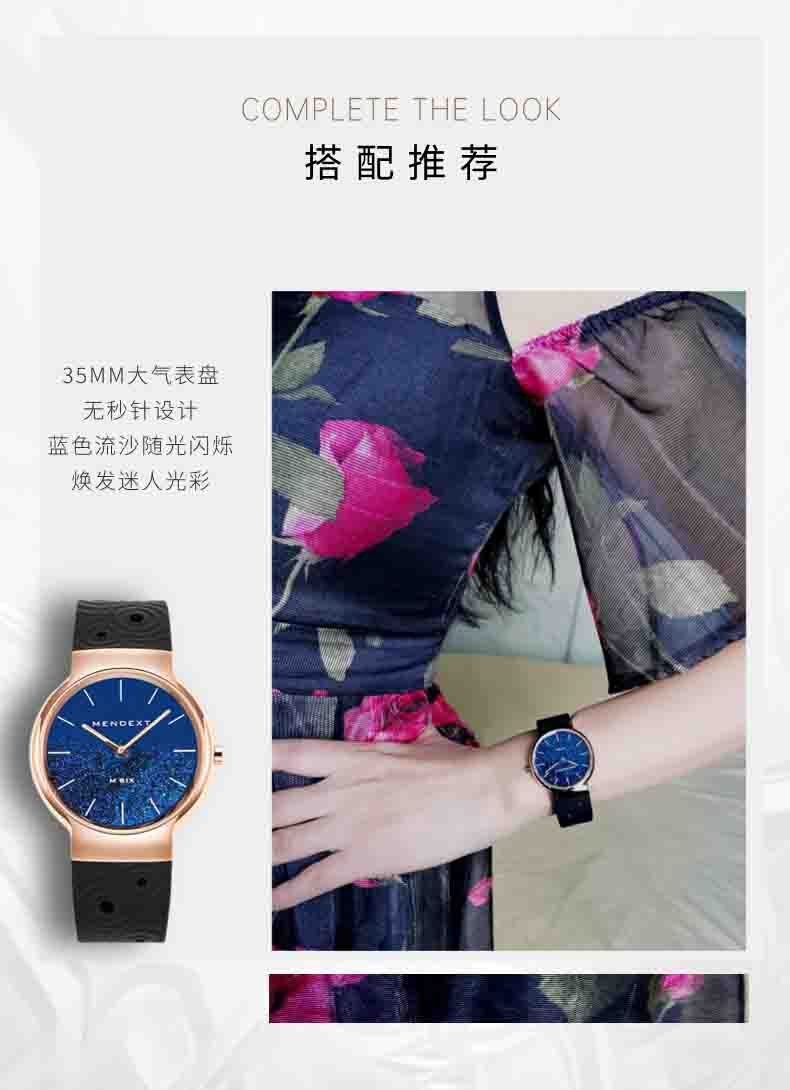 商品名称:MENDEXT漫狄蓝色流沙面 IP镀玫瑰色表壳 黑色表带M6IX-L06女士学生腕表手表