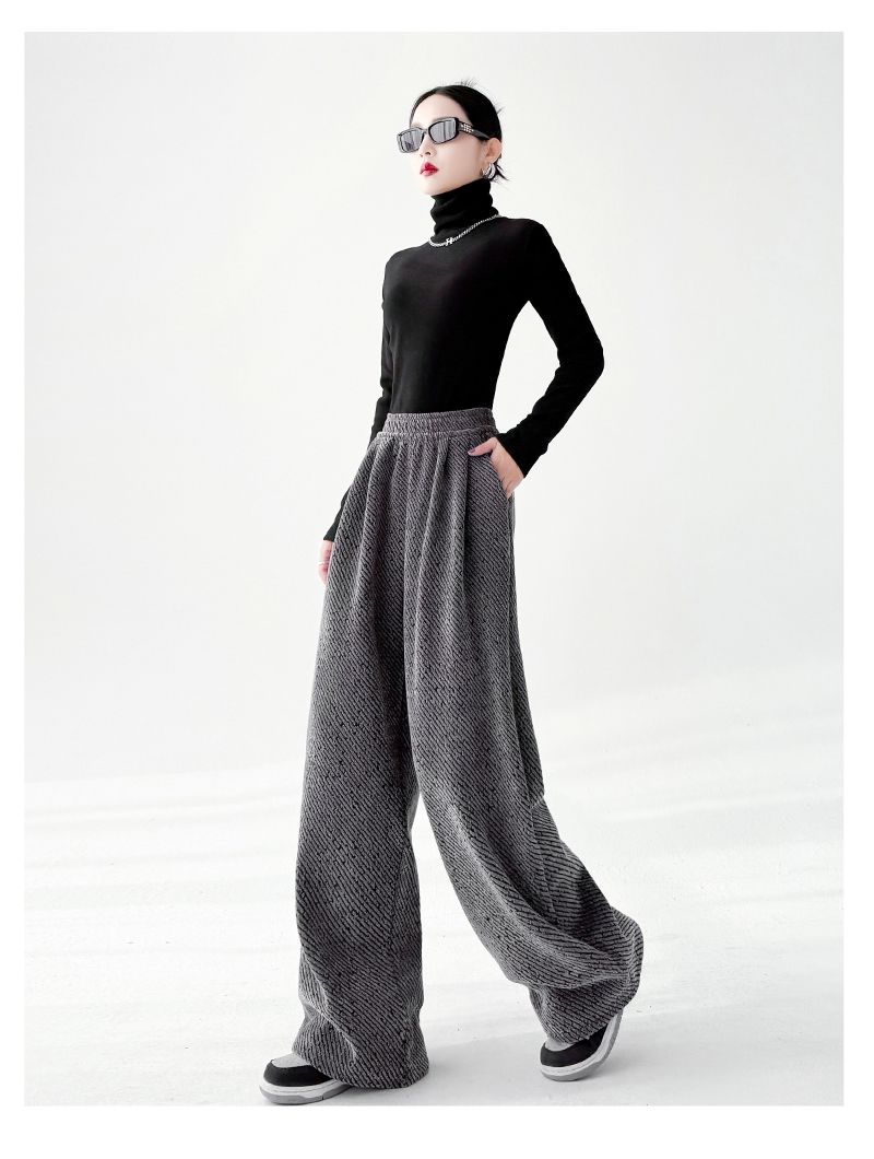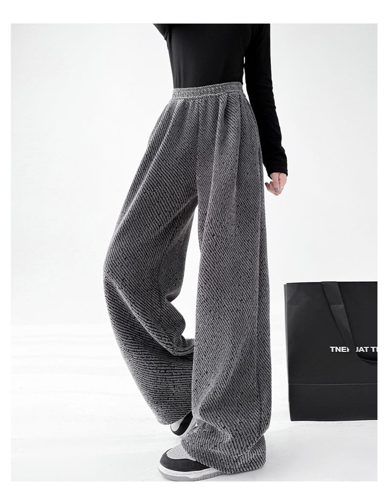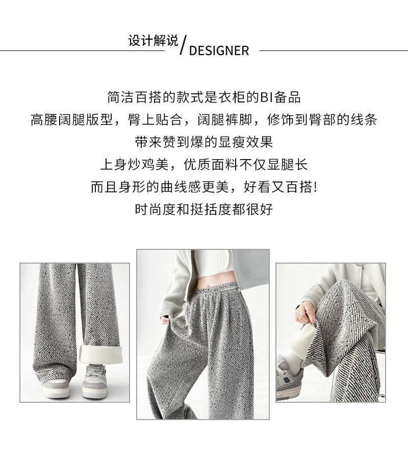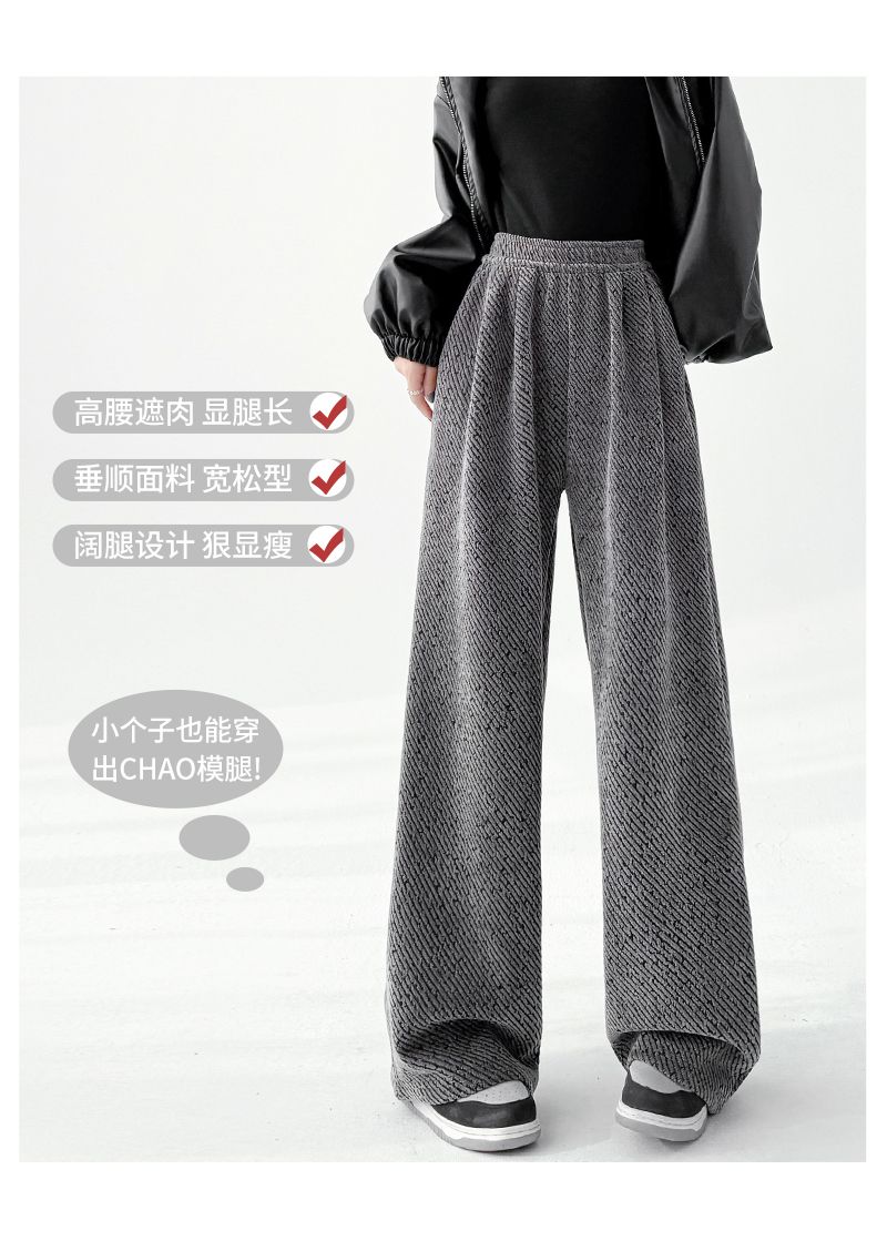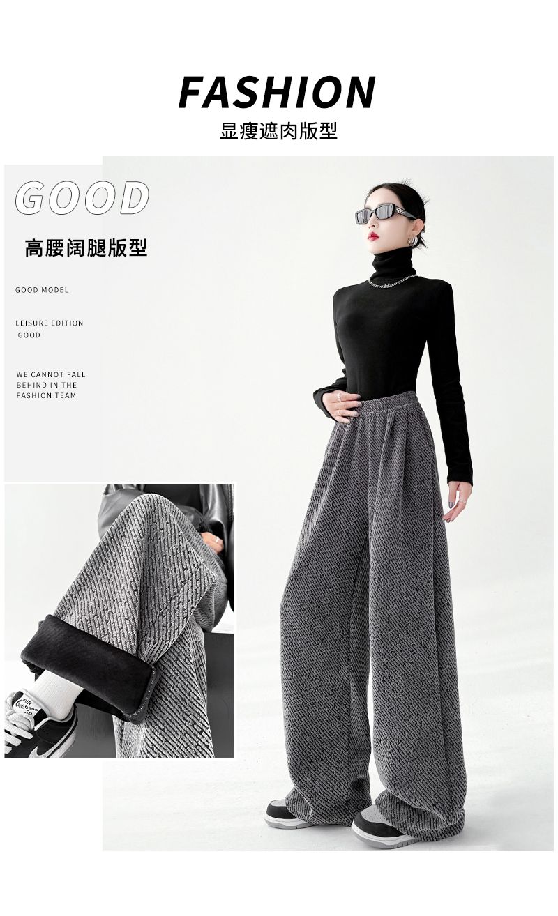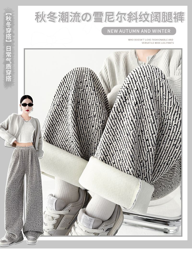 商品名称:斜纹银丝阔腿裤女秋冬加绒宽松慵懒风拖地长裤直筒休闲垂感运动裤