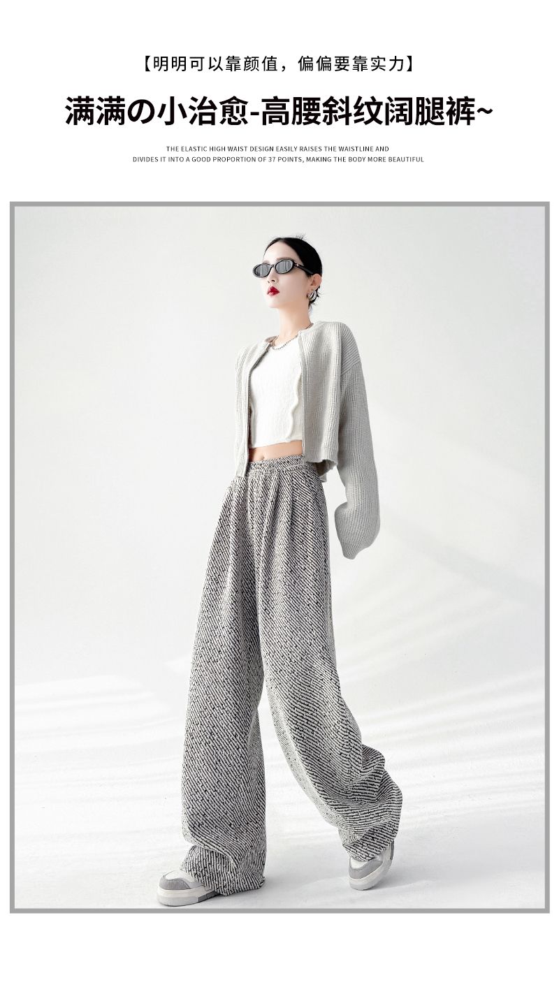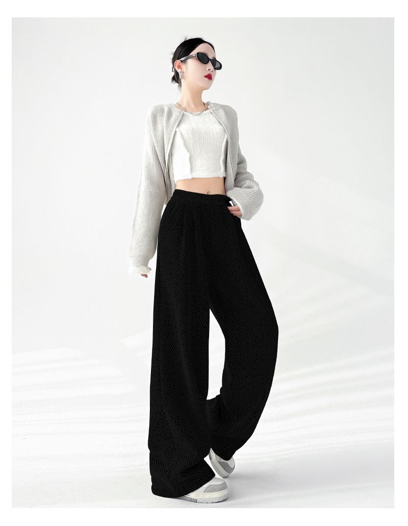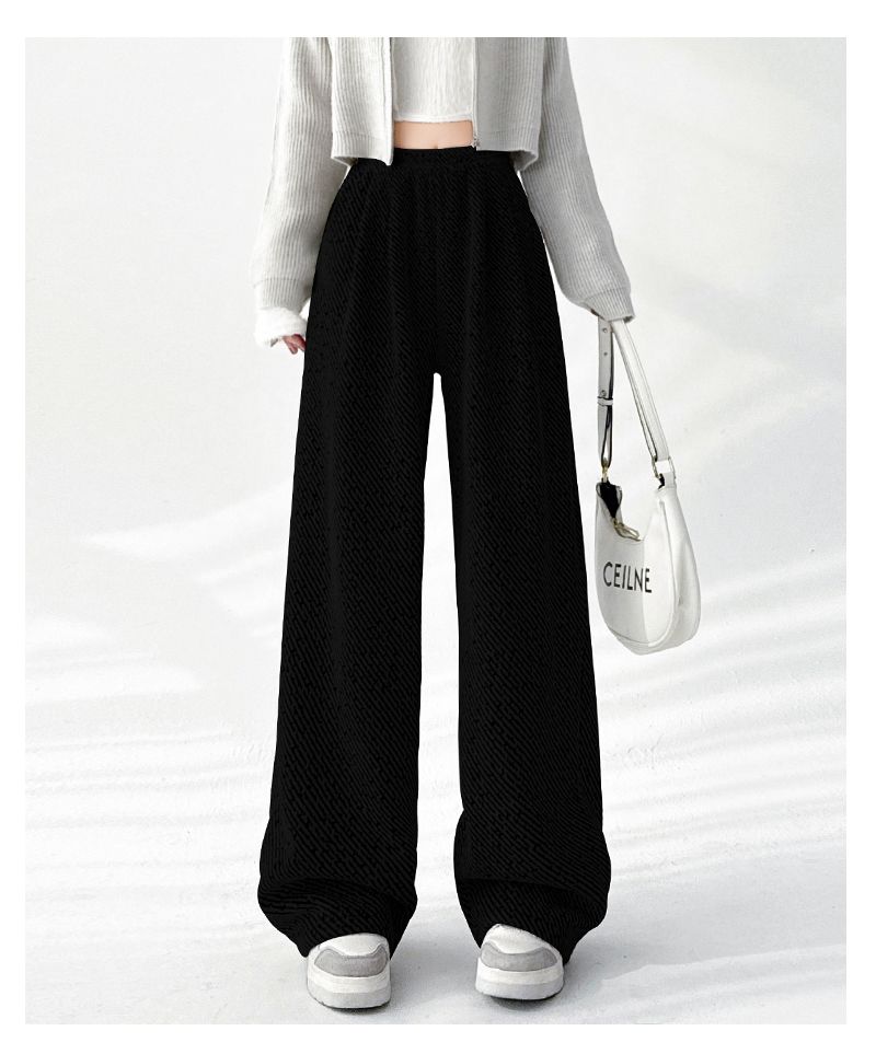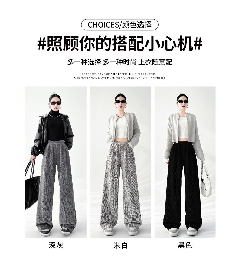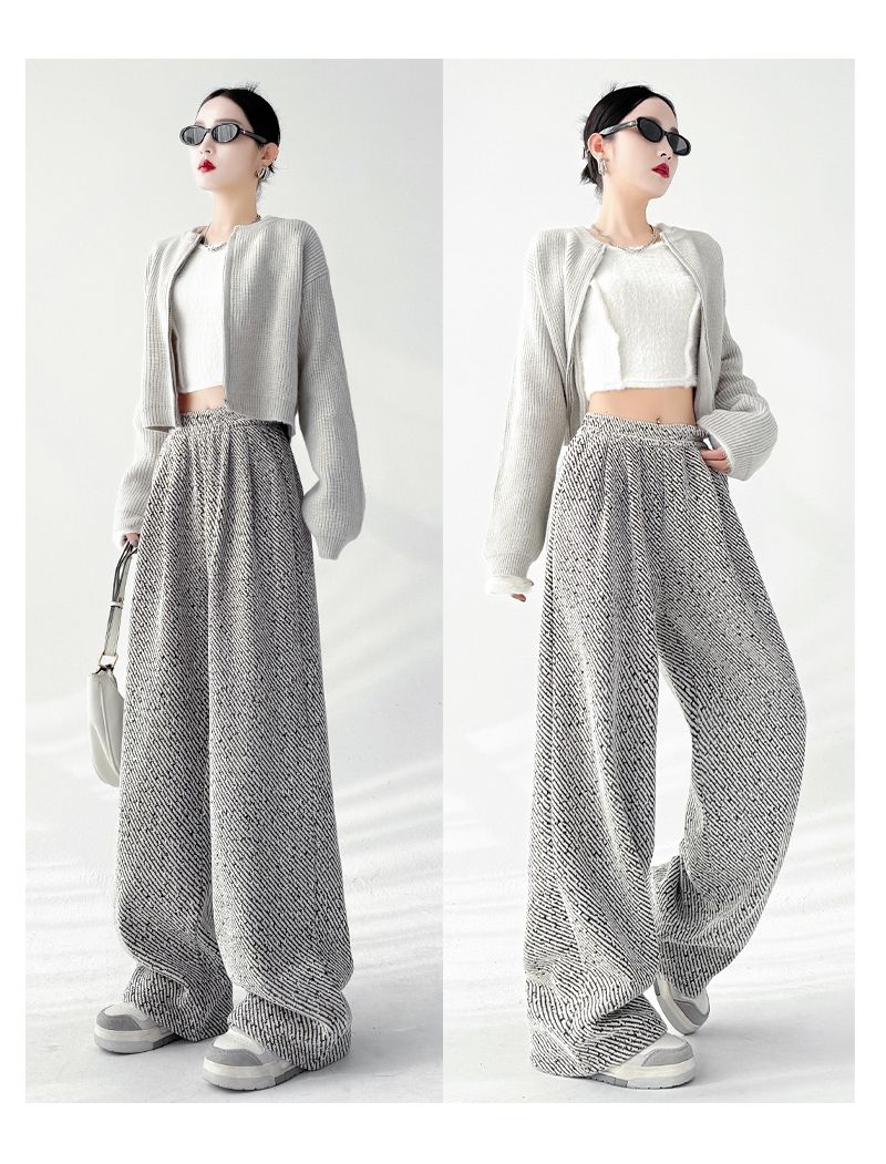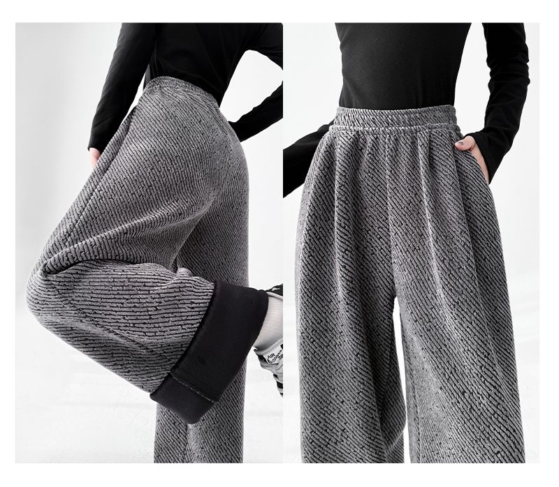 商品名称:斜纹银丝阔腿裤女秋冬加绒宽松慵懒风拖地长裤直筒休闲垂感运动裤