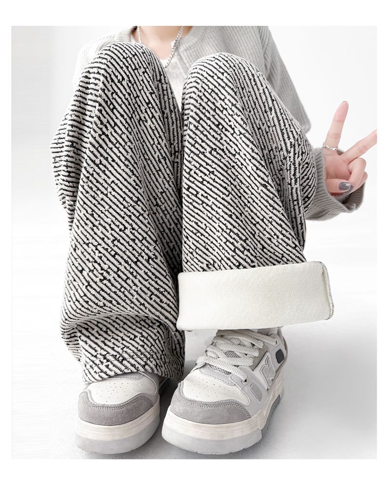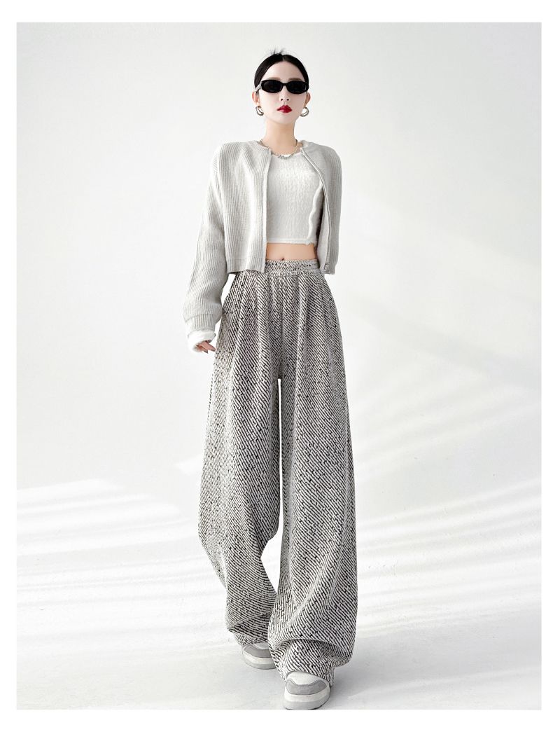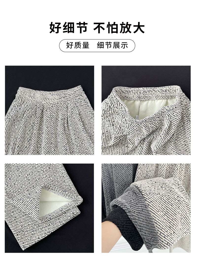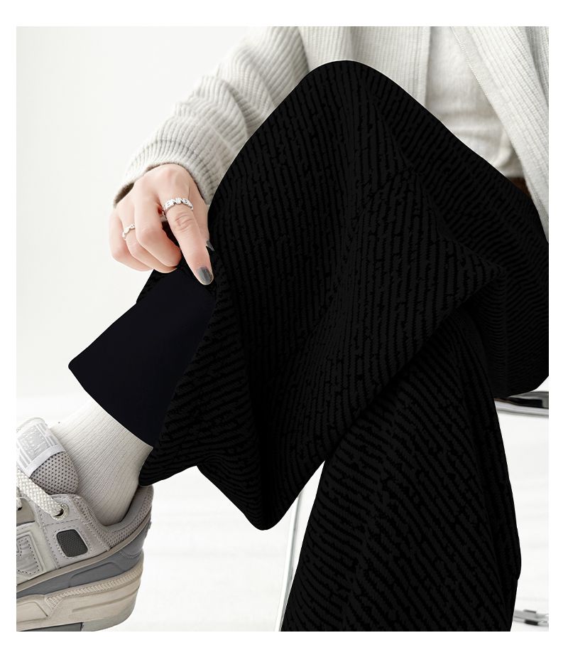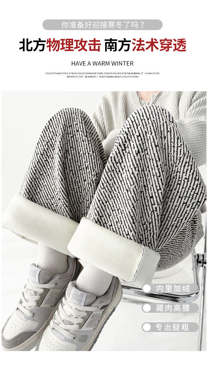 商品名称:斜纹银丝阔腿裤女秋冬加绒宽松慵懒风拖地长裤直筒休闲垂感运动裤