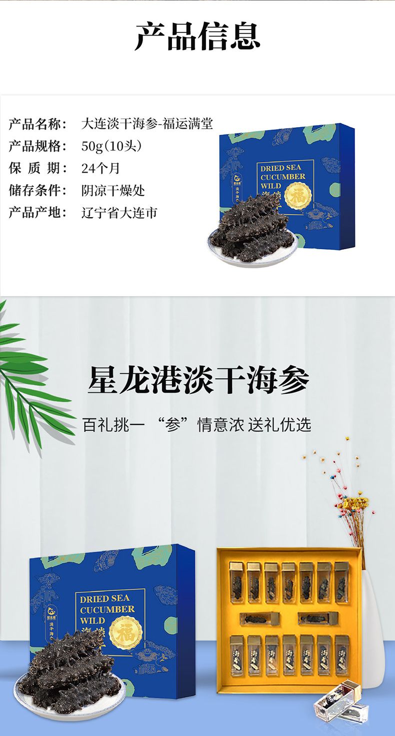 商品名称:星龙港 大连淡干海参 福运满堂 50g