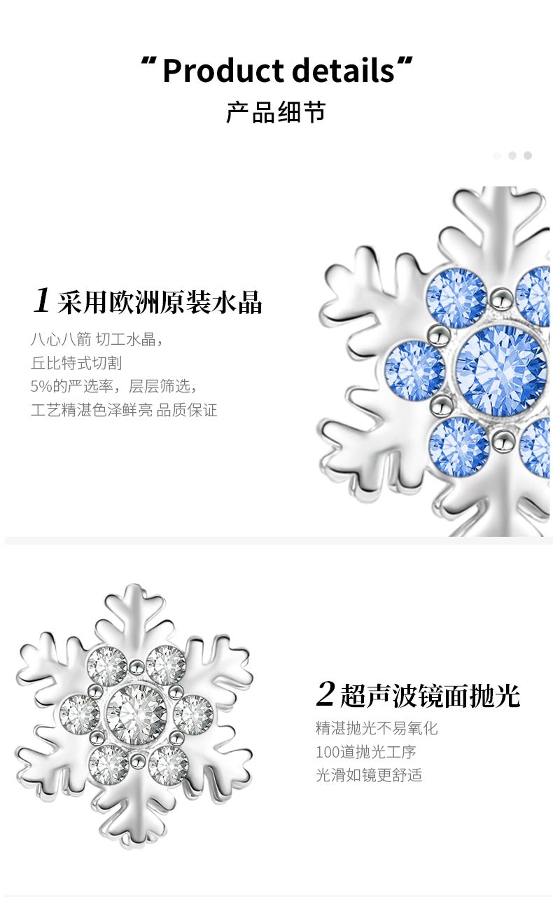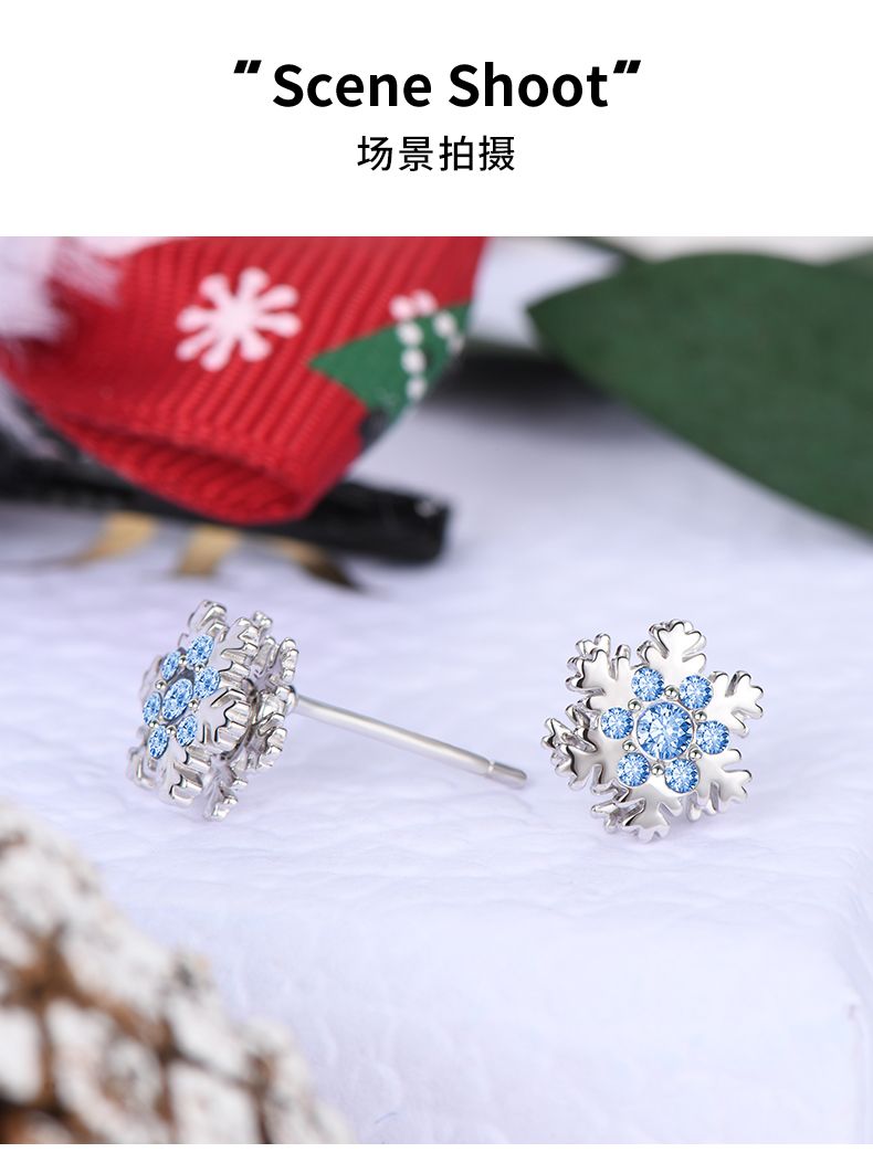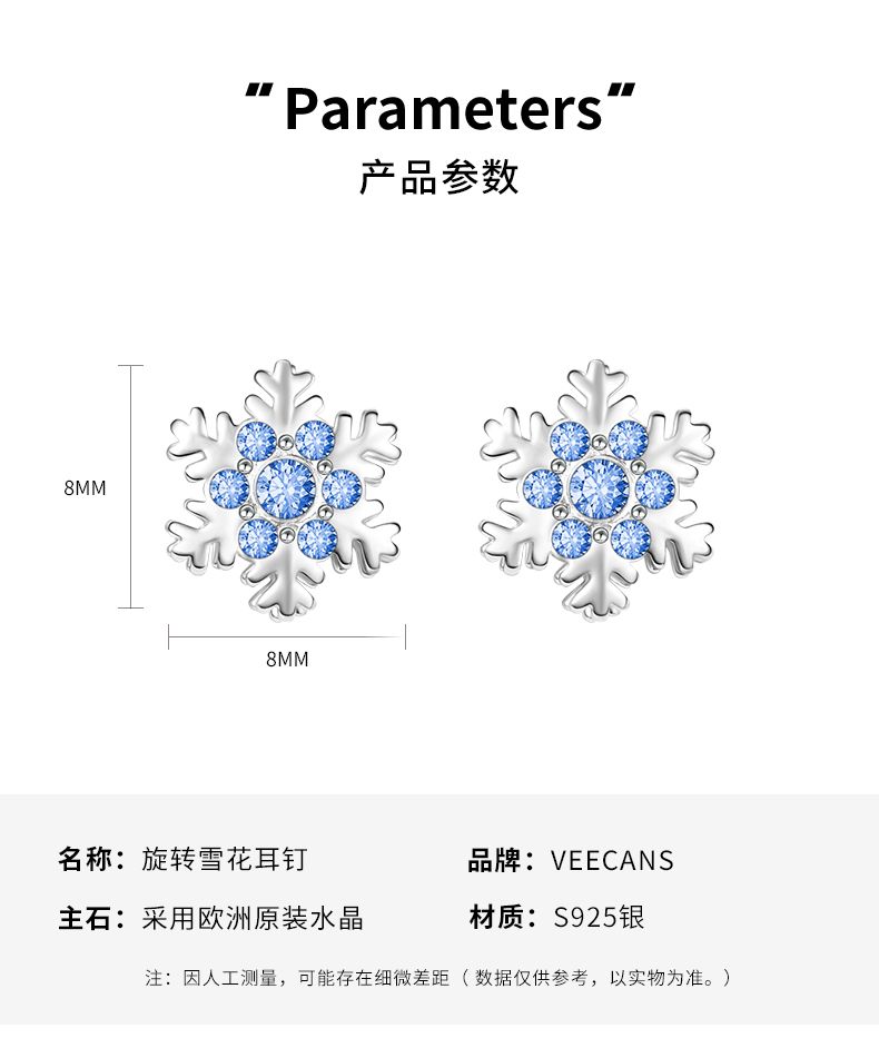 商品名称:VEECANS雪花耳钉女2024年新款纯银耳饰小众设计感高级精致