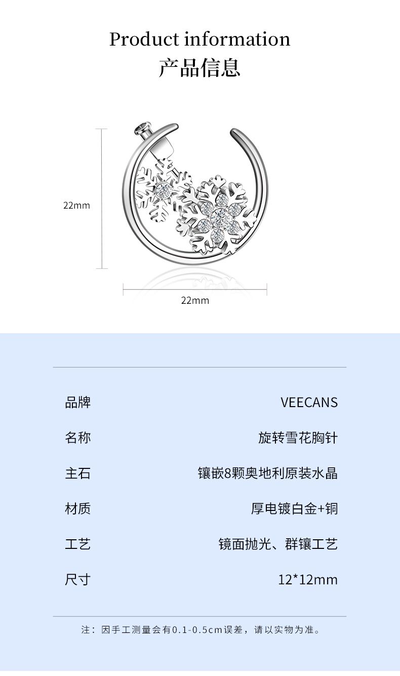 商品名称:VEECANS唯美雪花胸针高档女个性设计感小众装饰百搭配饰徽章