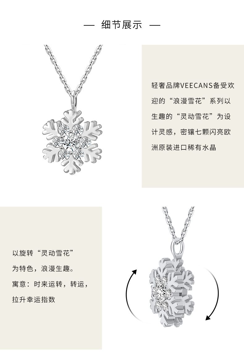 商品名称:VEECANS唯美雪花法式项链女款2024年新款纯银小众设计高级感