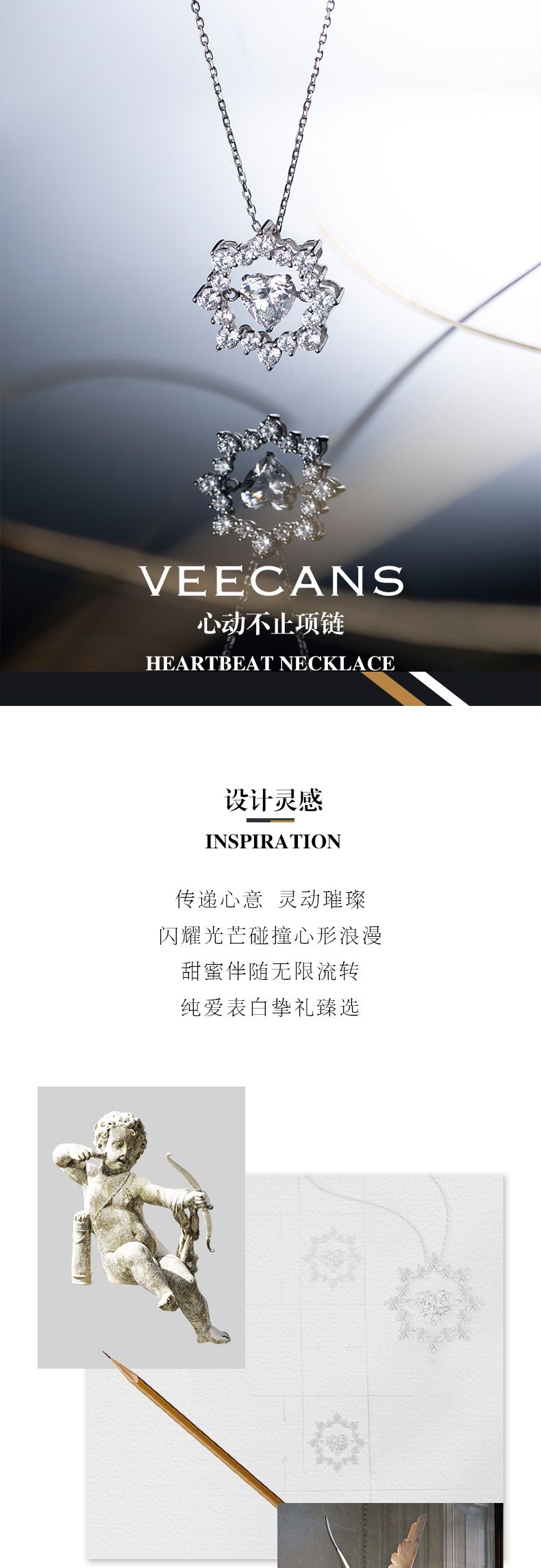 商品名称:VEECANS心动不止项链女生925纯银小众设计感爱心吊坠情人节送女友