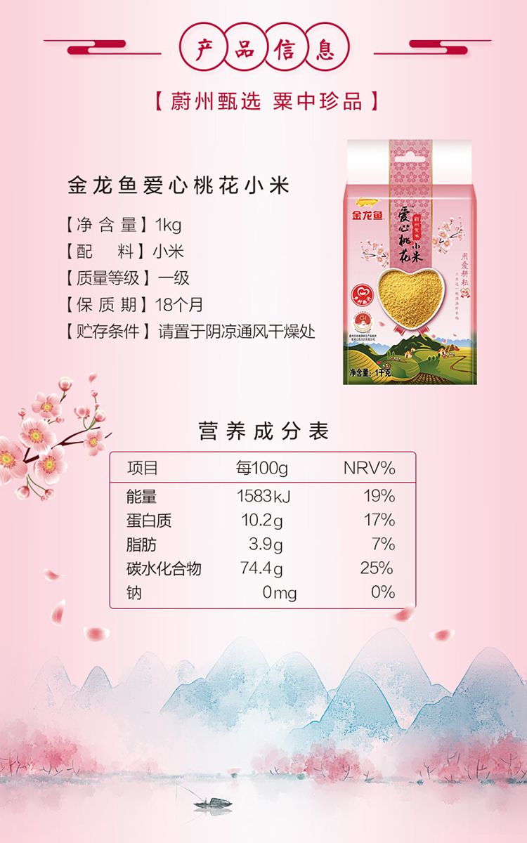 商品名称:金龙鱼爱心桃花小米(900g+100g)