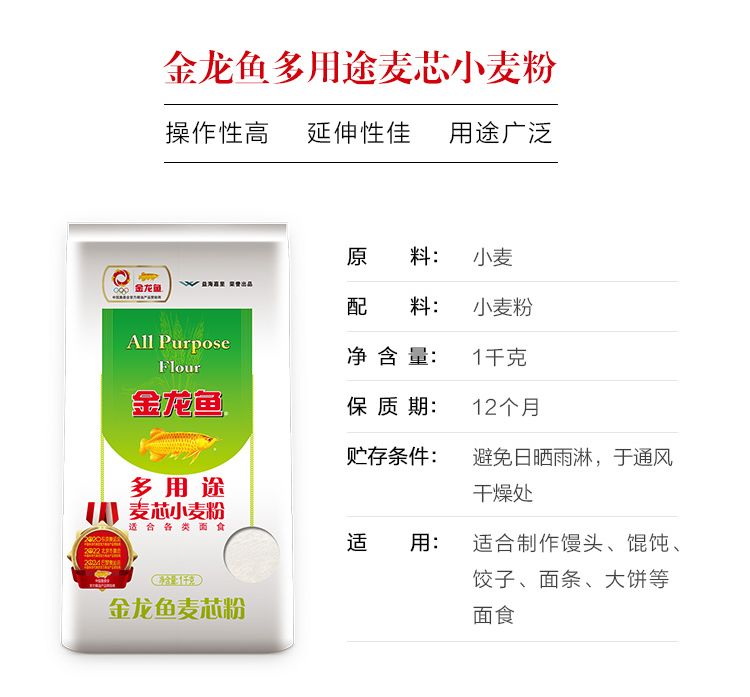 商品名称:金龙鱼多用途麦芯小麦粉1KG