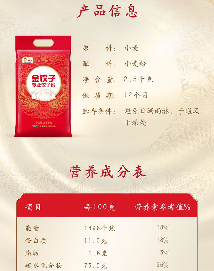 商品名称:金龙鱼金饺子专业饺子粉2.5KG