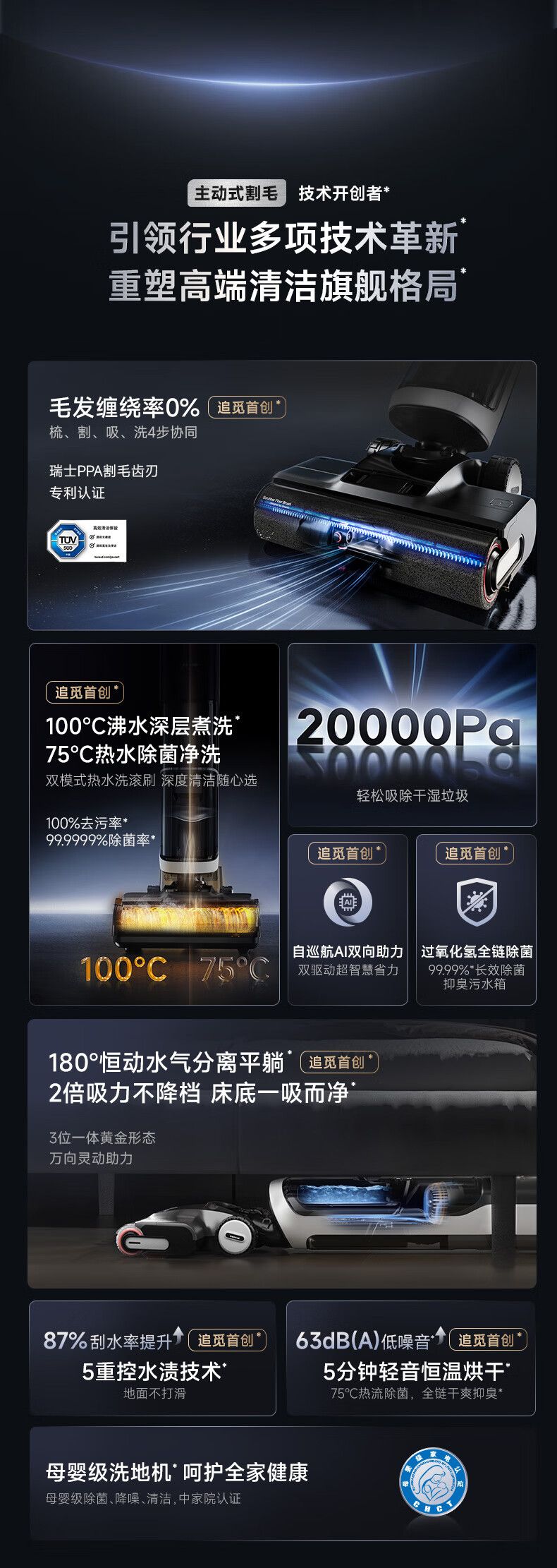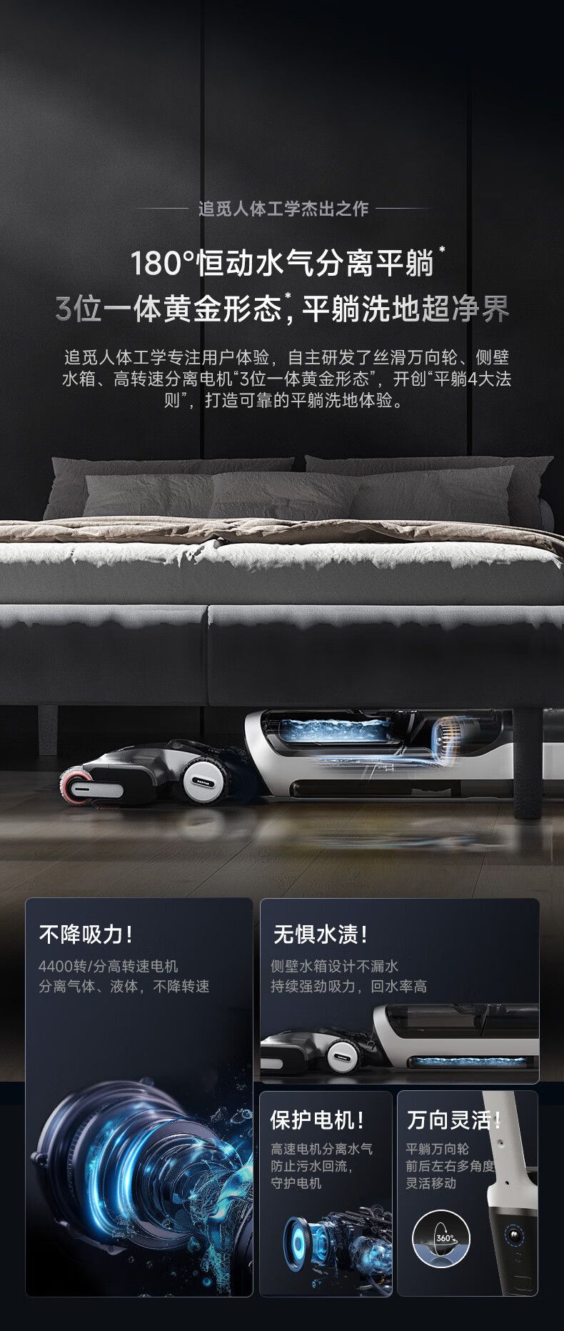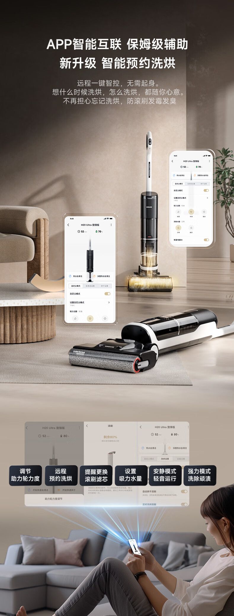 追觅H30 Ultra旋锋版躺平 0缠毛 AI助力无线智能家用热水洗地机高温速干双贴边吸拖洗烘一体扫地机