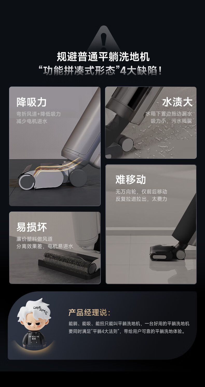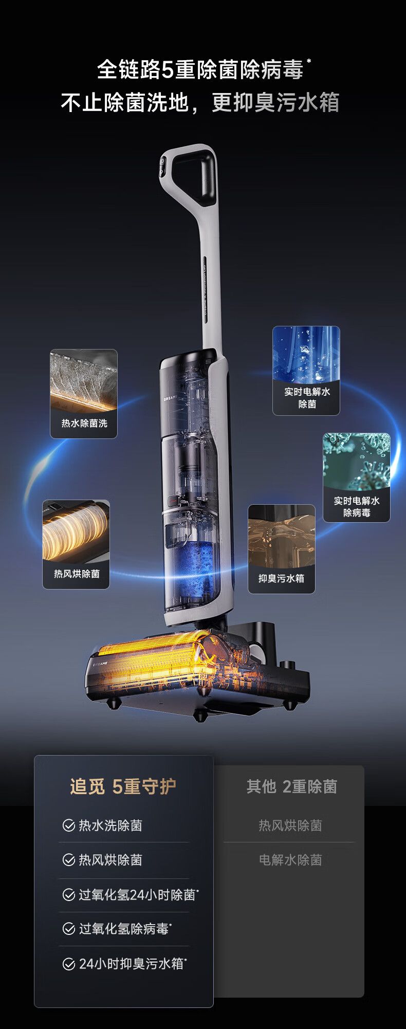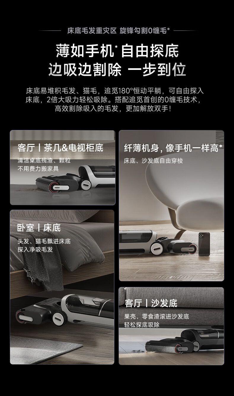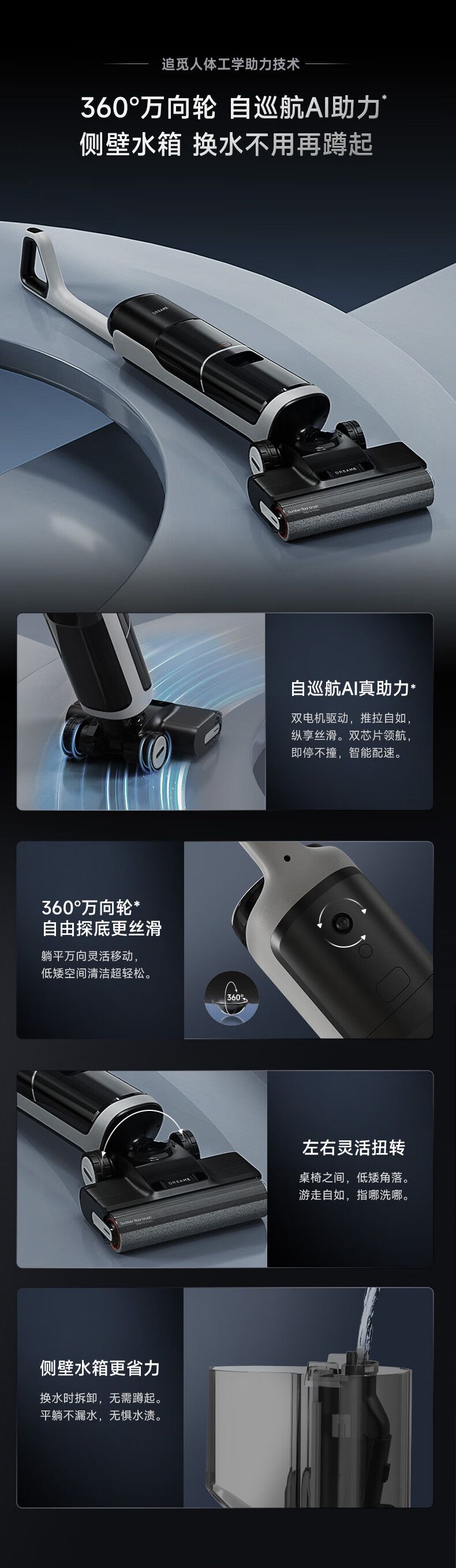 追觅H30 Ultra旋锋版躺平 0缠毛 AI助力无线智能家用热水洗地机高温速干双贴边吸拖洗烘一体扫地机