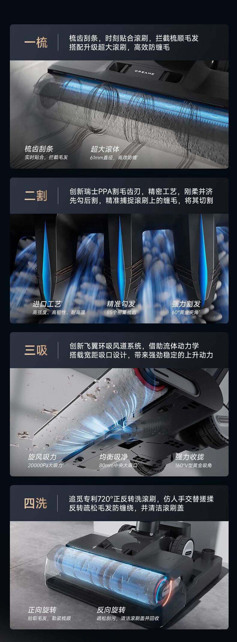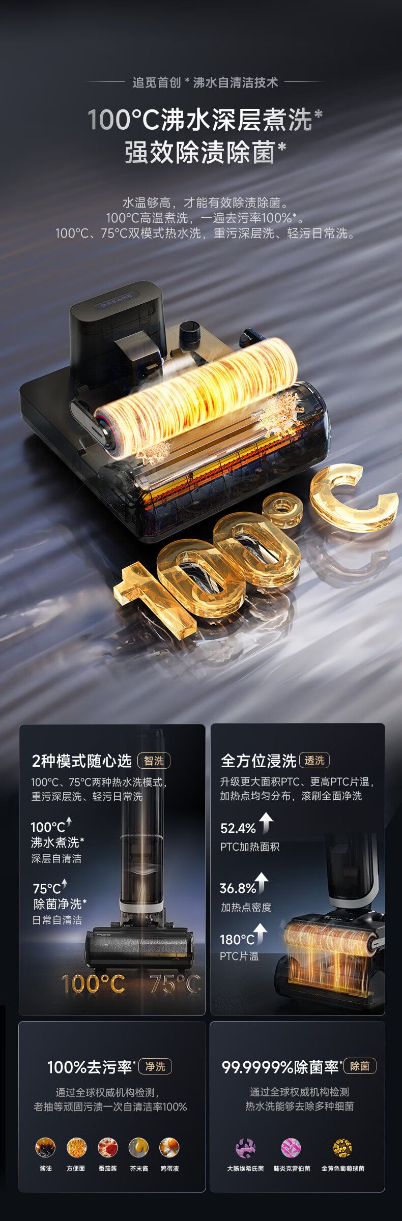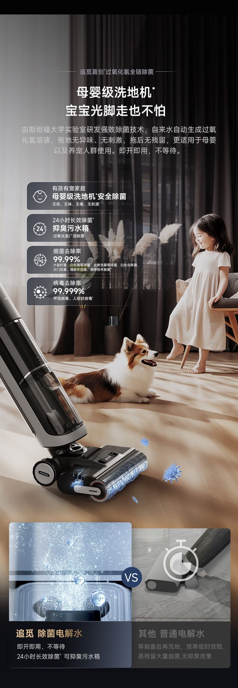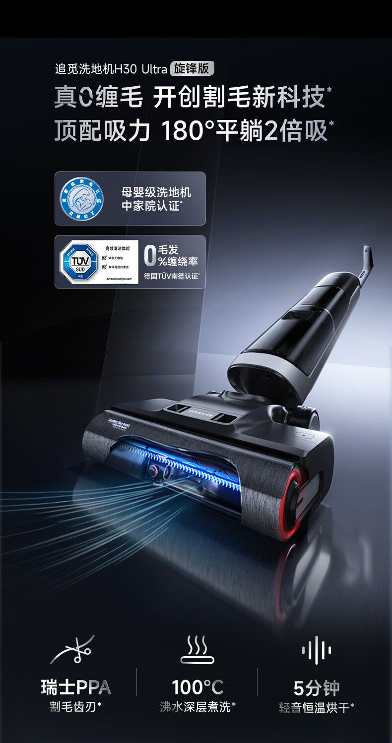 商品名称:追觅H30 Ultra旋锋版躺平 0缠毛 AI助力无线智能家用热水洗地机高温速干双贴边吸拖洗烘一体扫地机