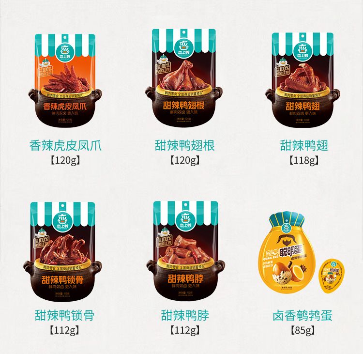 商品名称:恋上鸭鸭肉制品礼盒667款 香辣虎皮凤爪甜辣鸭翅根甜辣鸭翅鸭脖鹌鹑蛋休闲零食