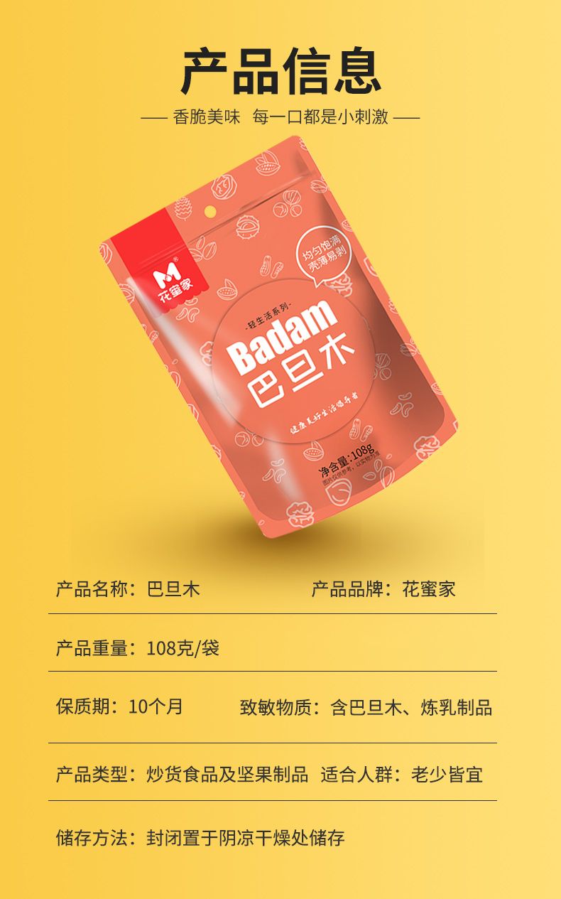 商品名称:花蜜家巴旦木108g/袋*5