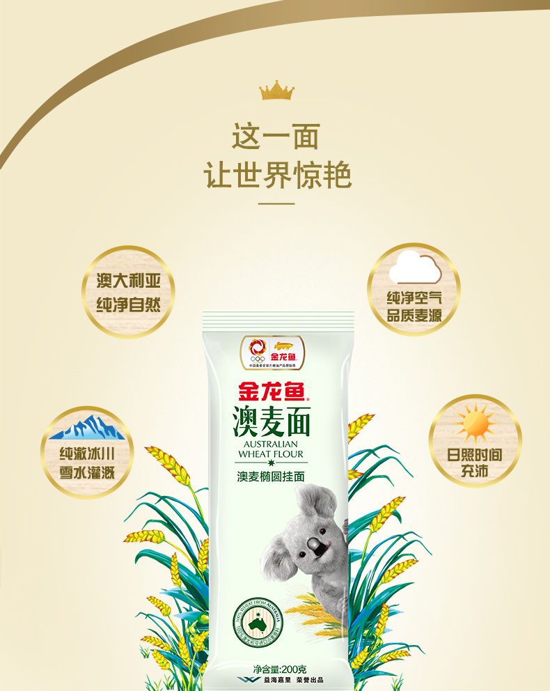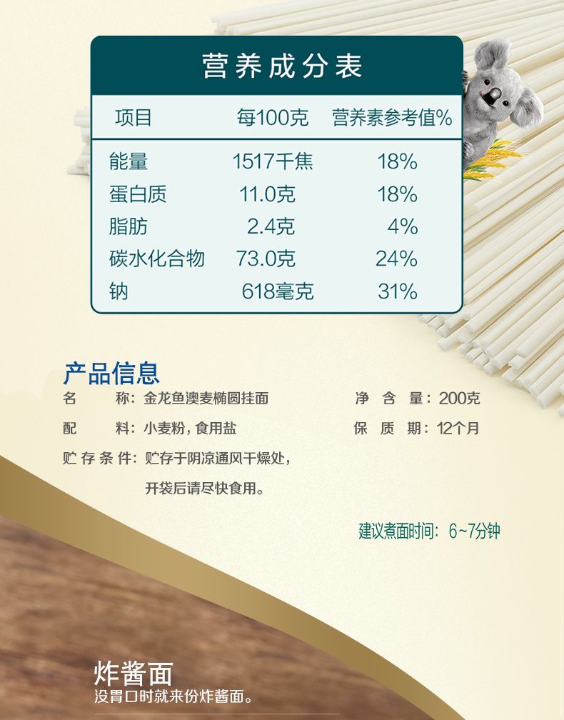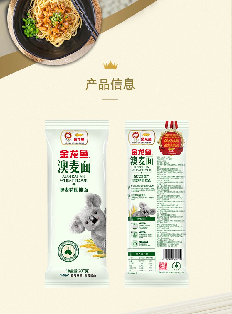 商品名称:金龙鱼澳麦椭圆挂面200g*5袋