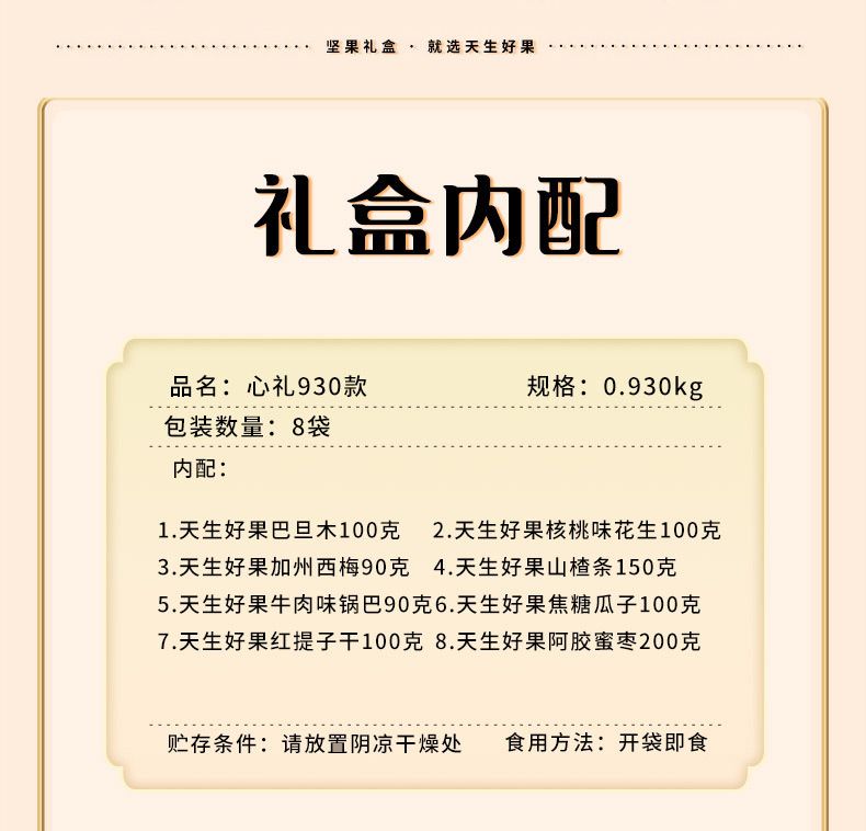 商品名称:天生好果 心礼930款 坚果零食礼盒