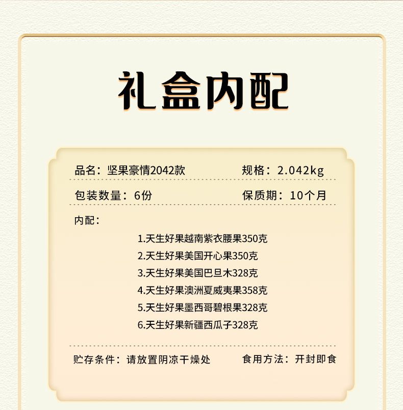 商品名称:天生好果坚果豪情2042款 坚果零食礼盒