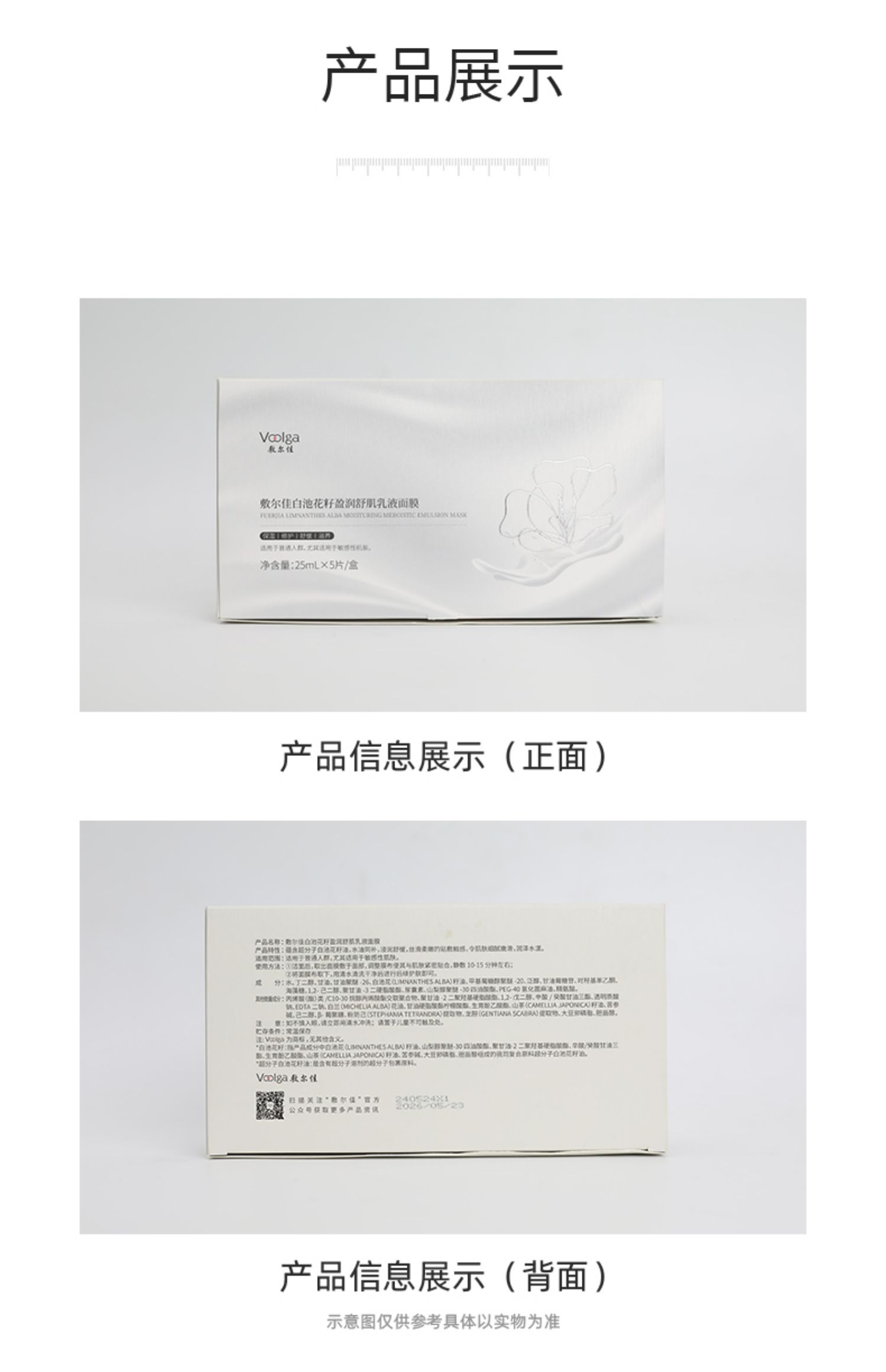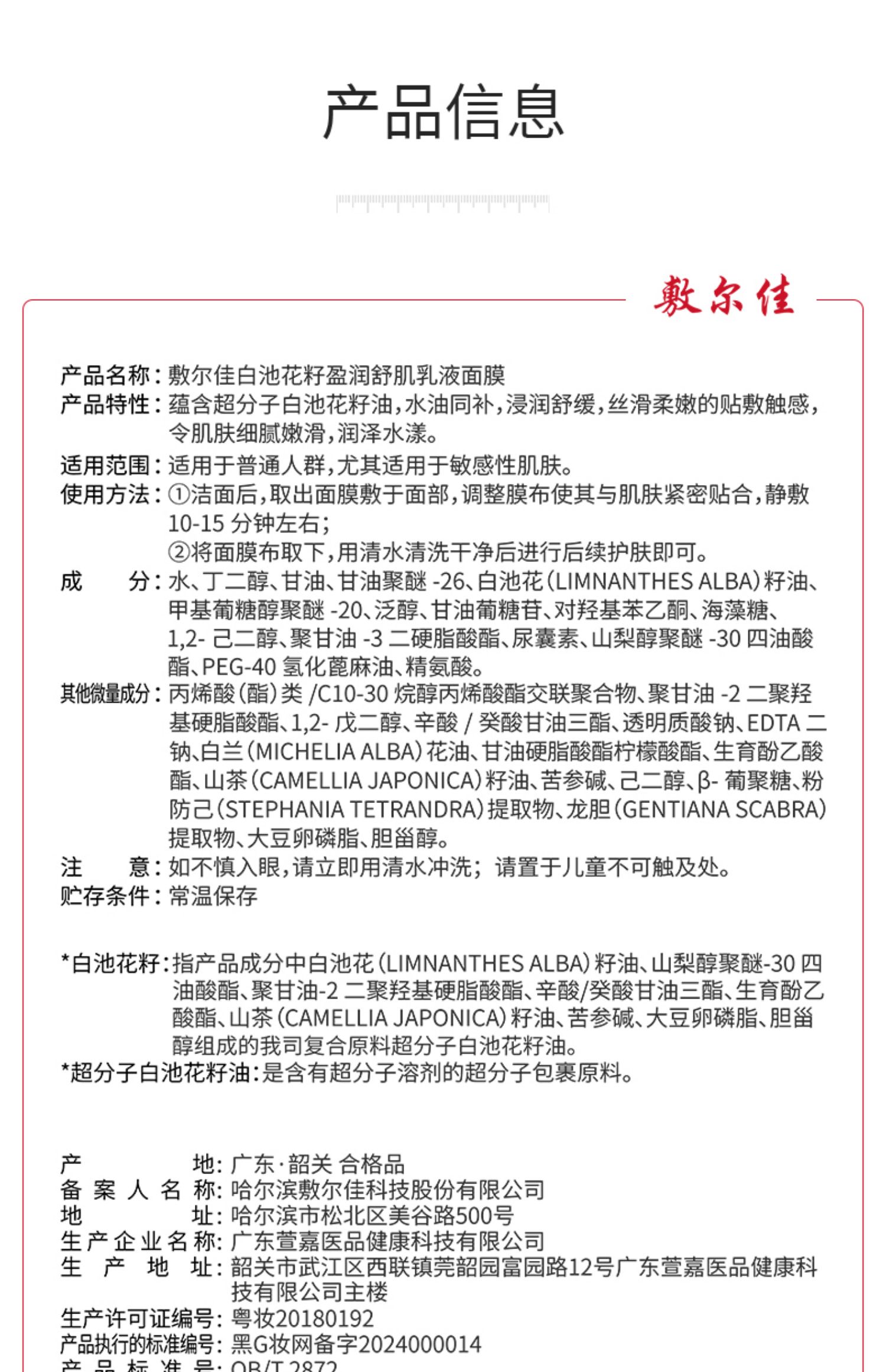 商品名称:敷尔佳 白池花籽乳液面膜 5片/盒