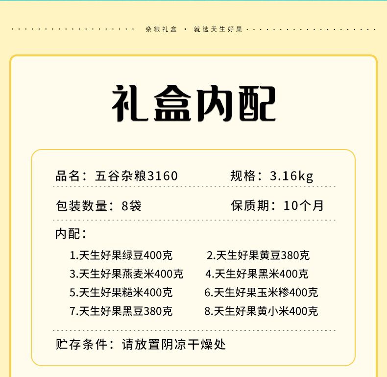 商品名称:天生好果五谷杂粮3160款干货杂粮礼盒