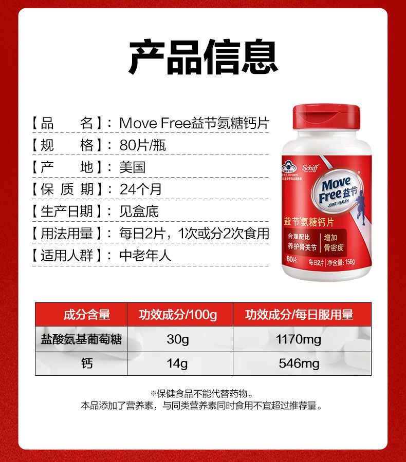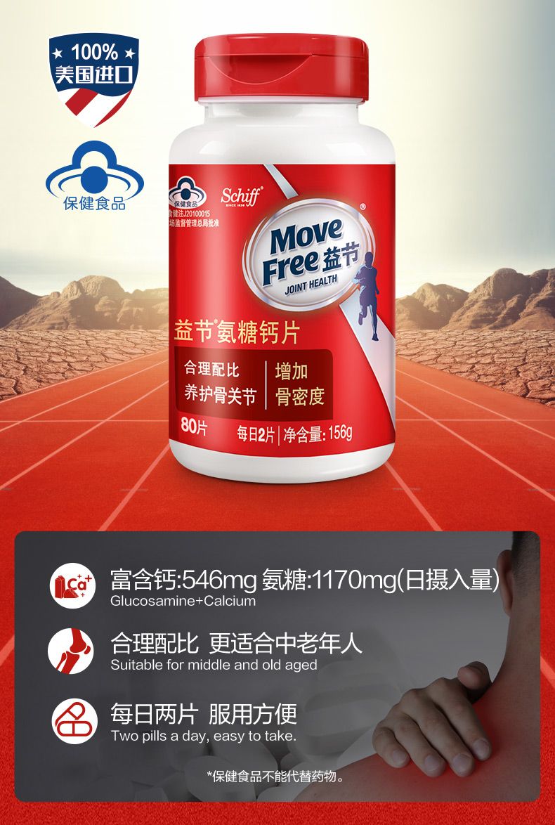商品名称:益节MoveFree 氨糖钙片 80粒