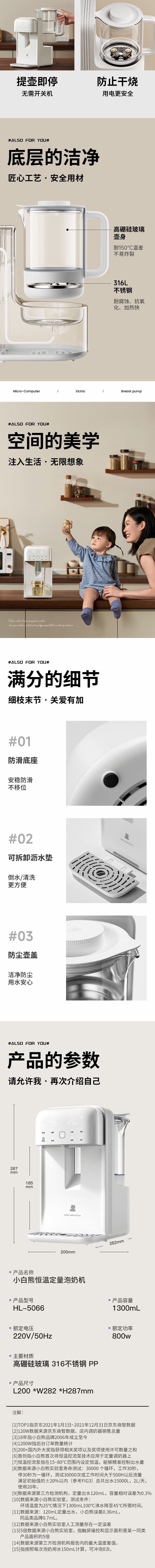 商品名称:小白熊 净饮式定量泡奶机(小浪1.3L)HL-5066