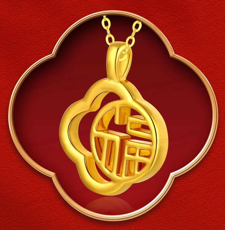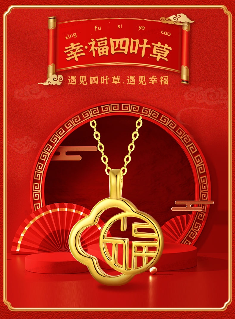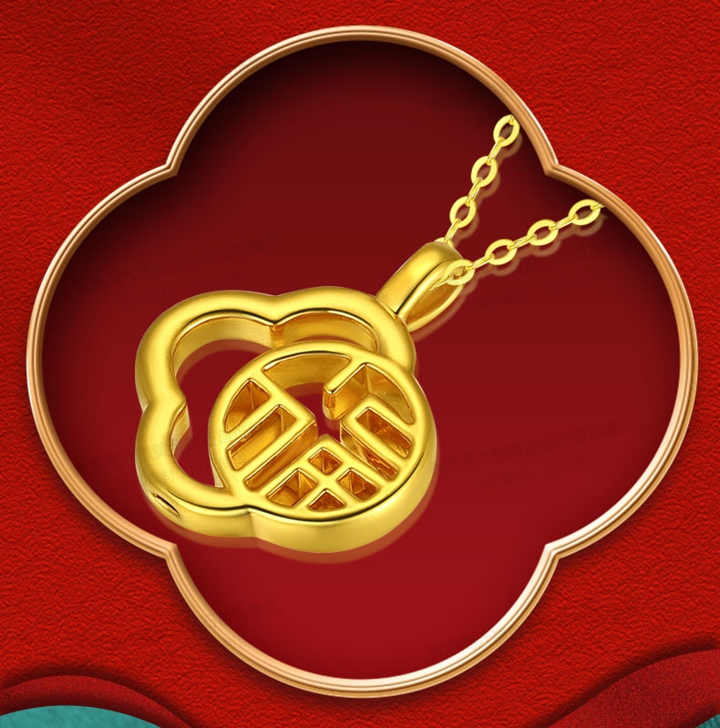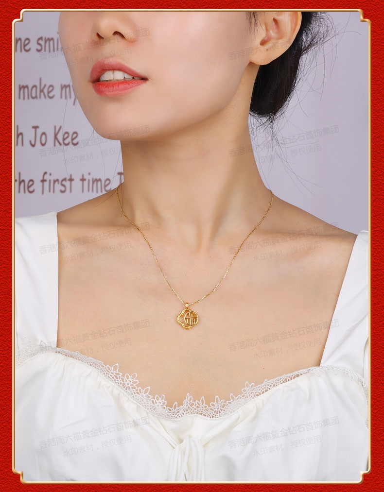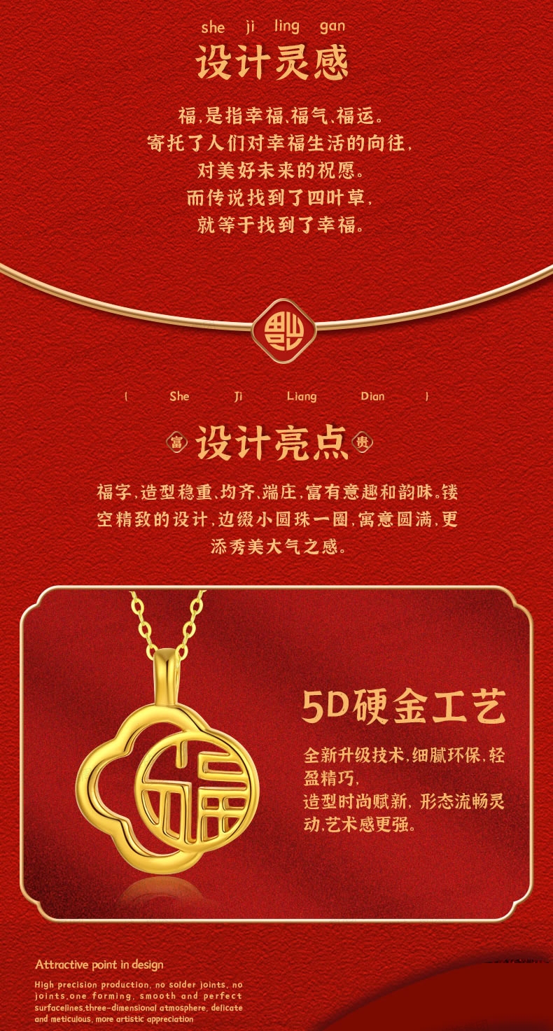 商品名称:香港周六福5G黄金-足金幸福四叶草福牌吊坠【材质:足金含约:0.1g 内镶3DAG模型】