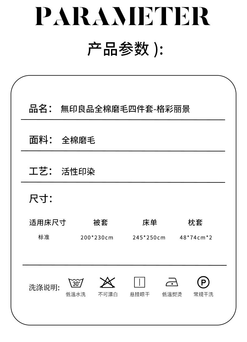 商品名称:無印良品全棉磨毛四件套-格彩丽景MUJI-TJ23-78 200*230cm