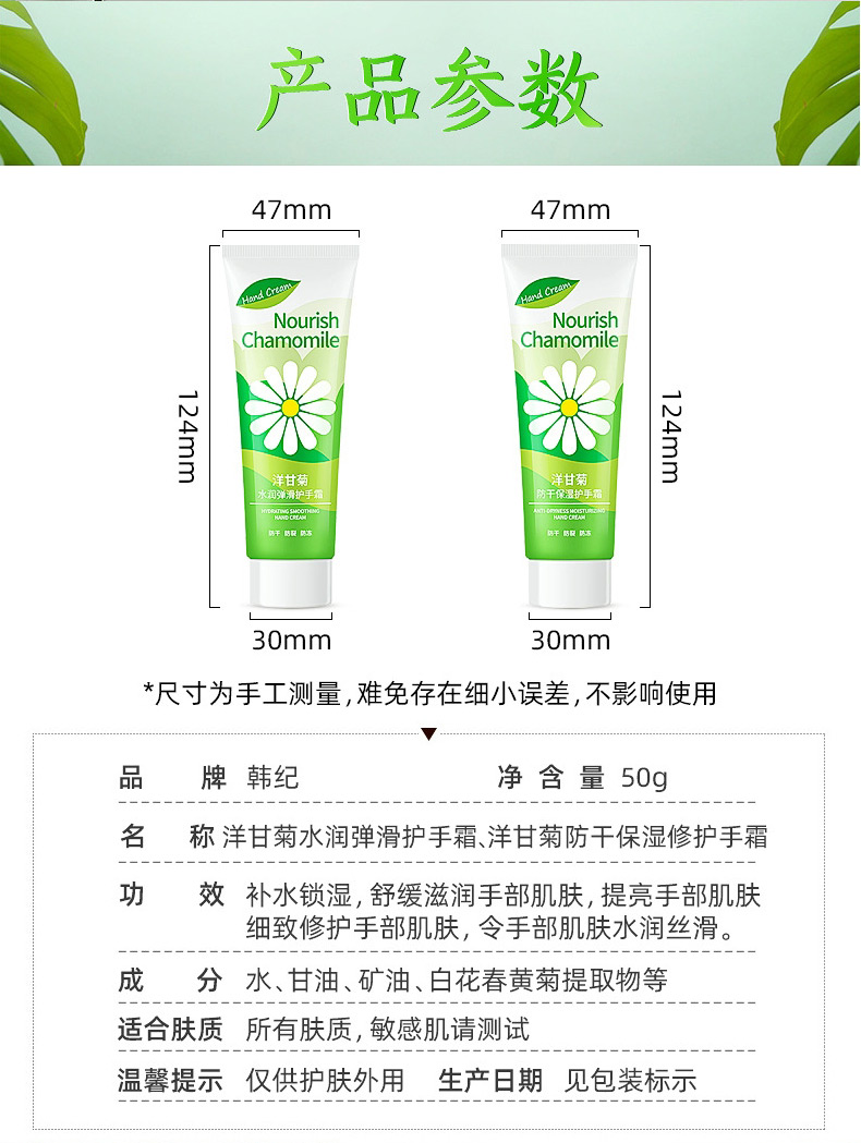 商品名称:Hankey/韩纪 洋甘菊水润弹滑/防干保湿护手霜 50g