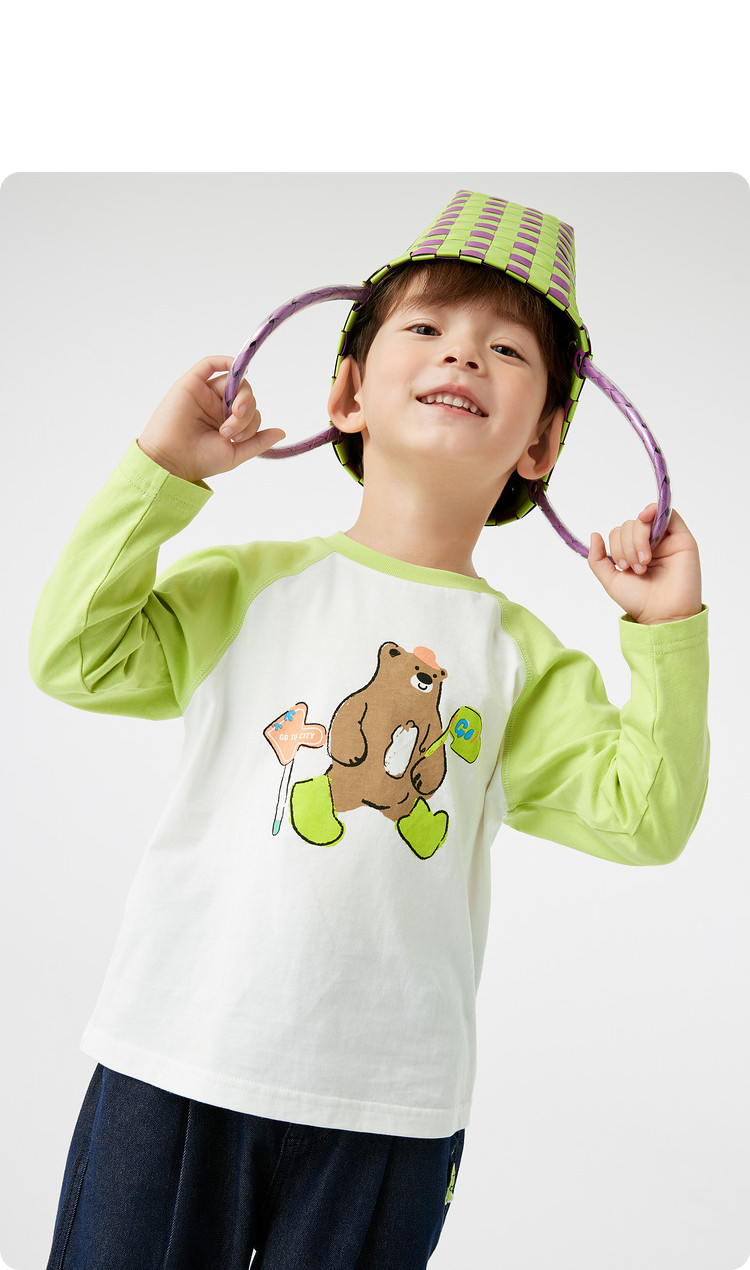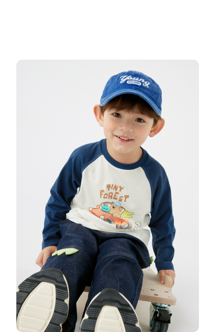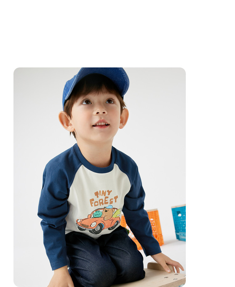 男童儿童长袖T恤儿童春秋装纯棉打底上衣萌趣印花 044869