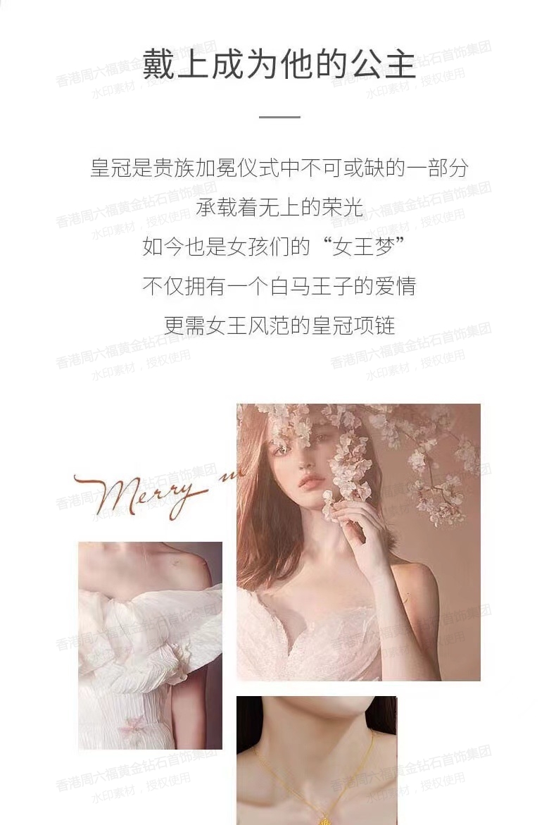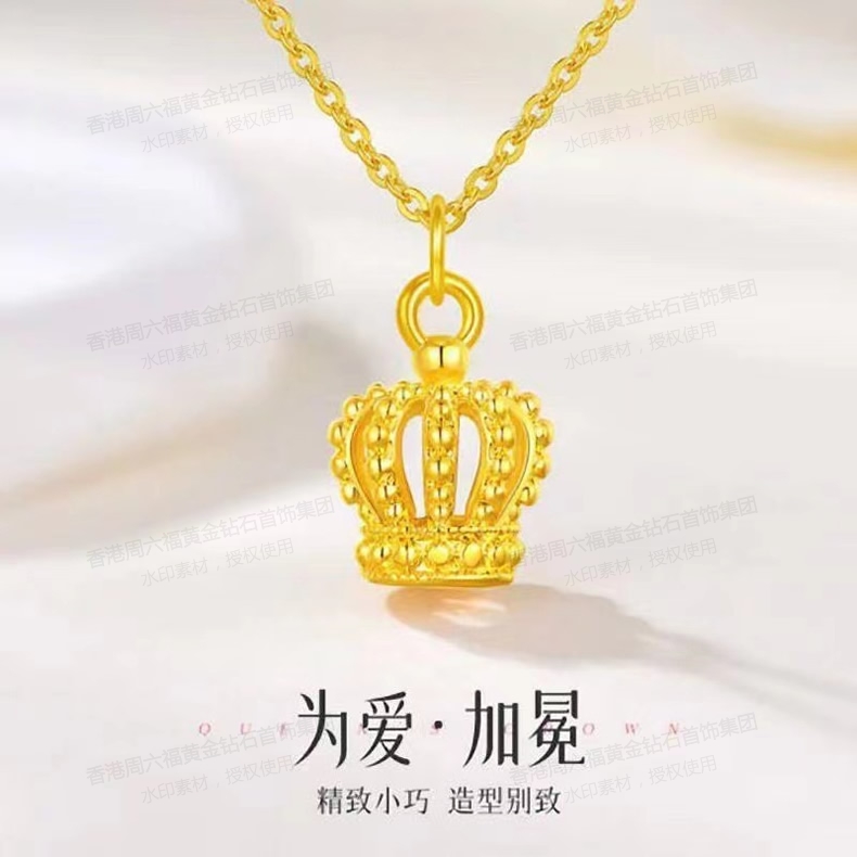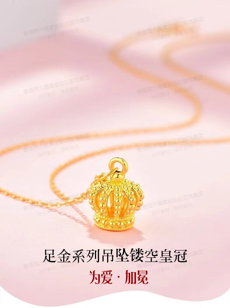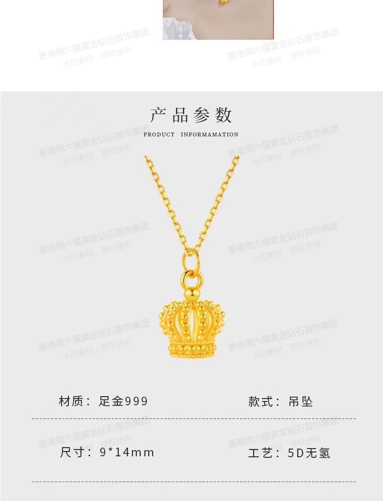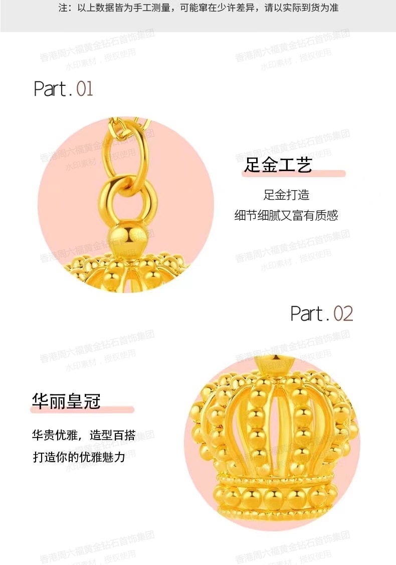 商品名称:香港周六福5G黄金-足金镂空皇冠为爱加冕吊坠【材质:足金含约:0.1g 内镶3DAG模型】