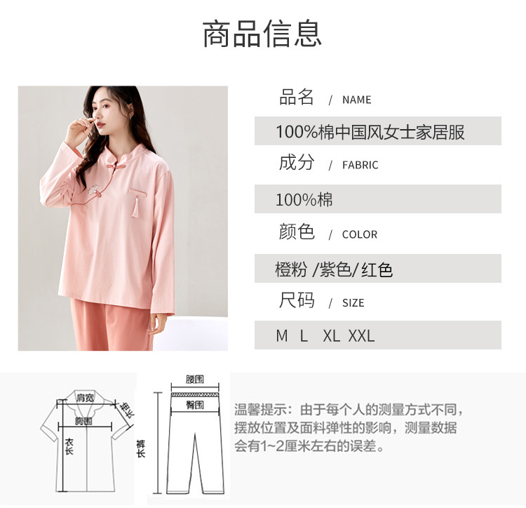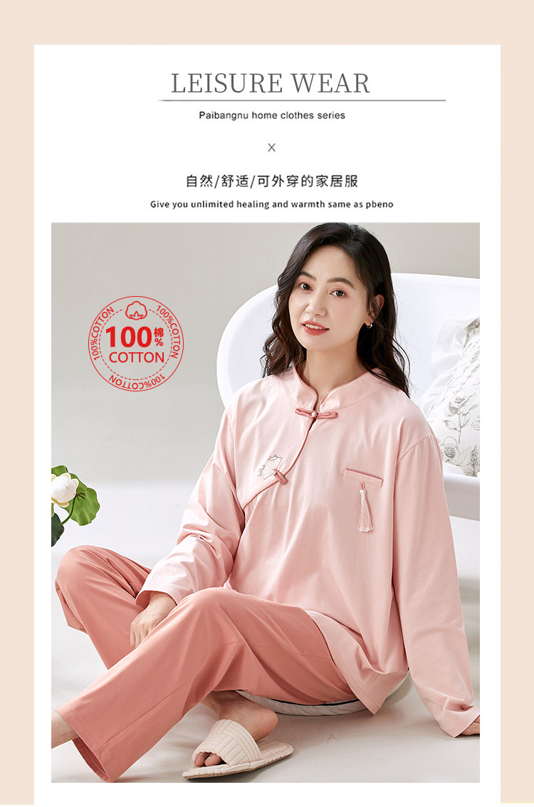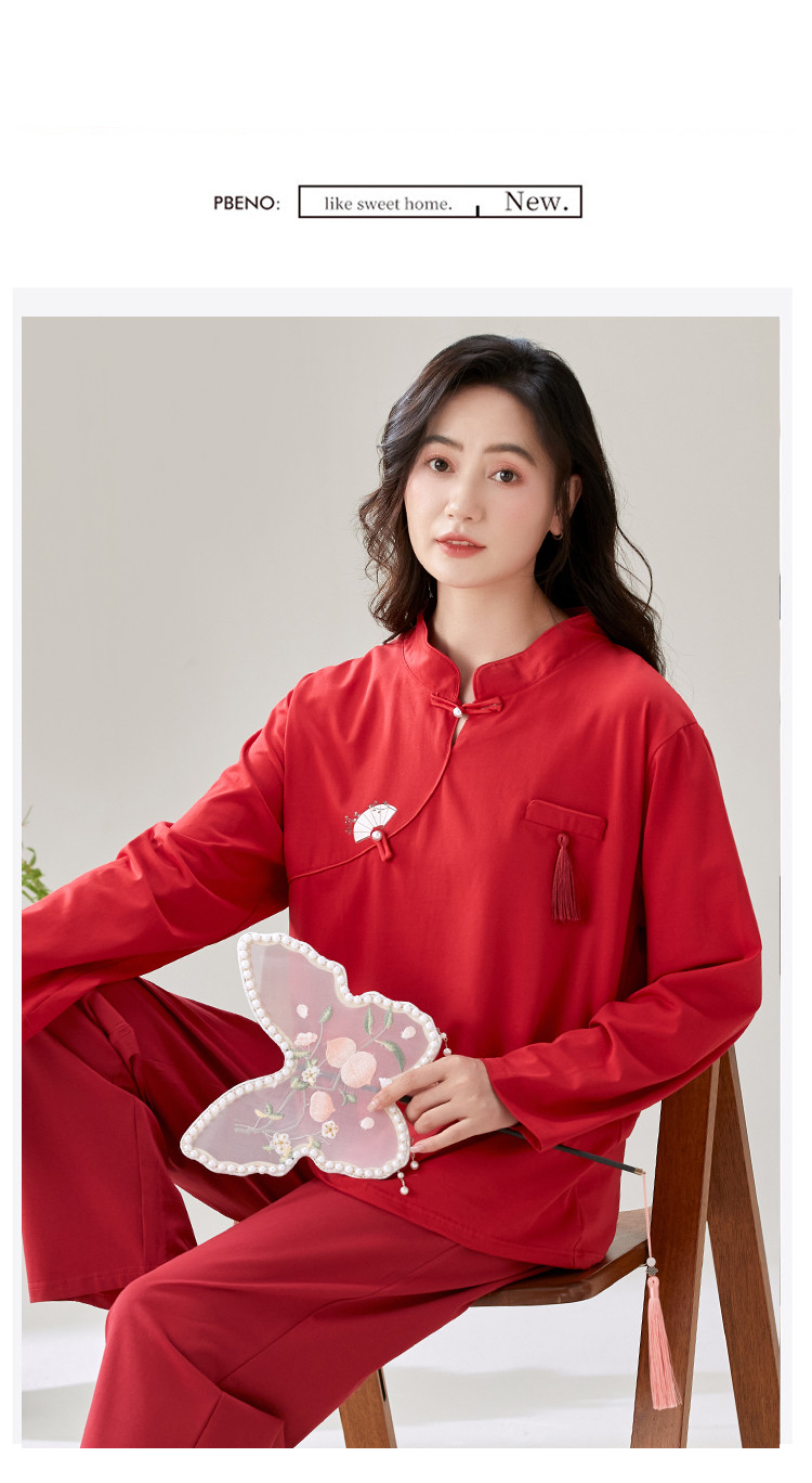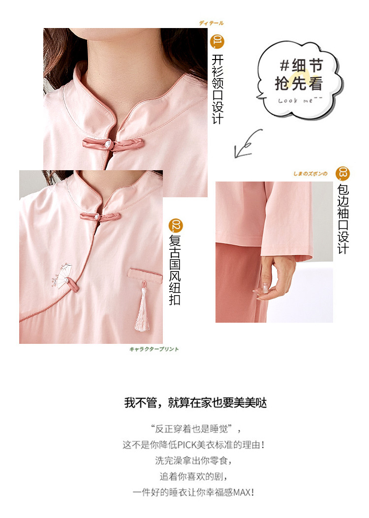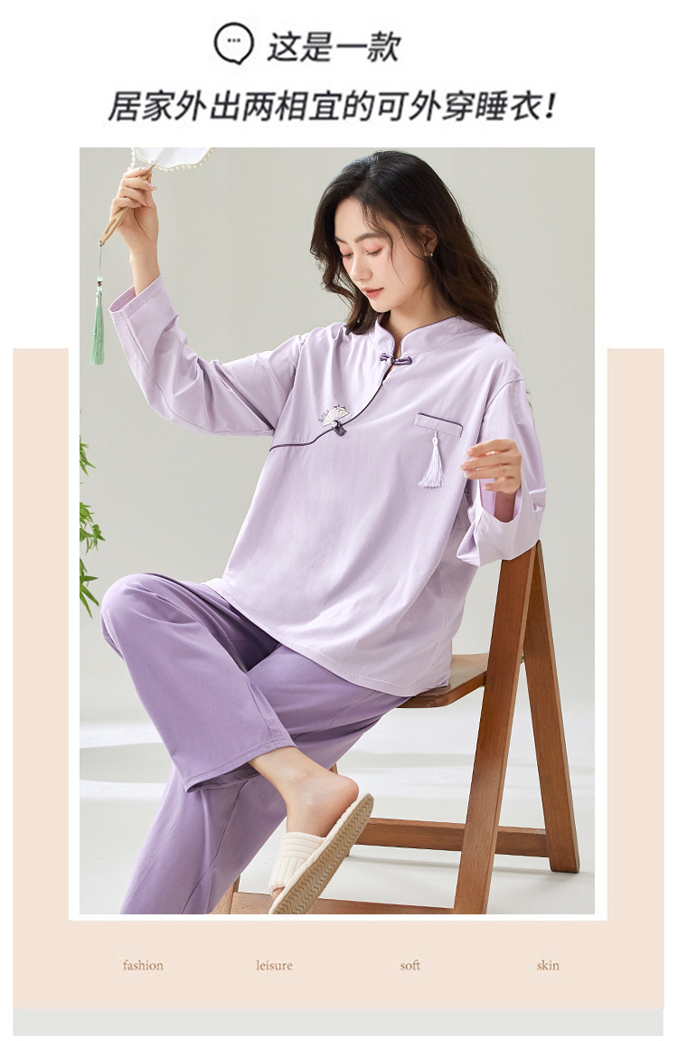 商品名称:【100%棉】新中式国风高级感舒适睡衣女士家居服可外穿春秋 741406