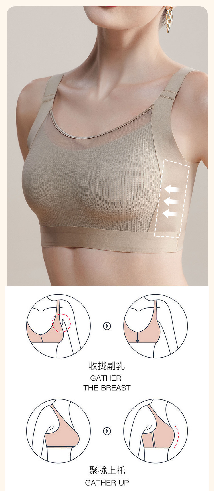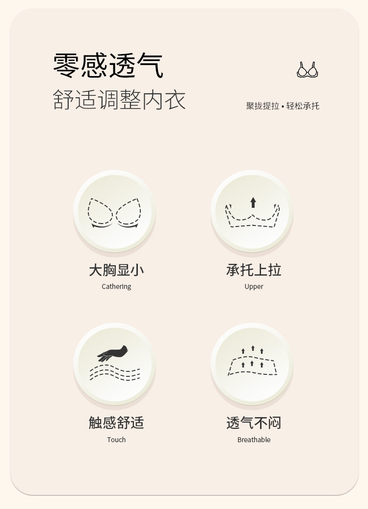 商品名称:【大包容】聚拢不空杯舒适无痕上托收副乳薄款内衣女士文胸罩新款 684830