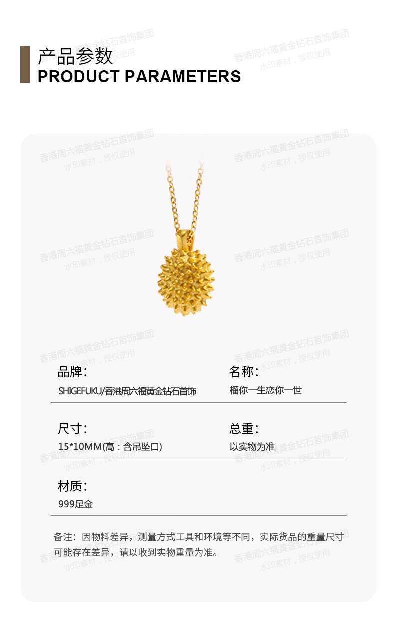 商品名称:香港周六福5G黄金-足金榴你一生恋你一世吊坠【材质:足金含约:0.1g 内镶3DAG模型】