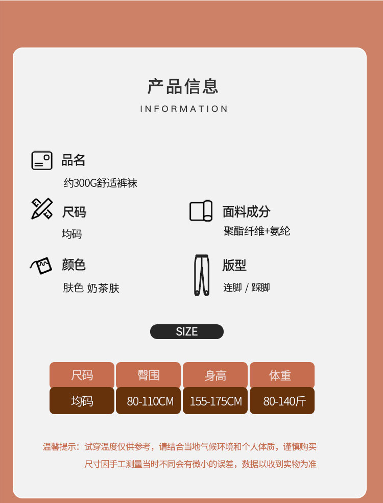 商品名称:【2条装光腿神器】约300G加绒加厚保暖连脚踩脚裤袜女秋冬款 601310