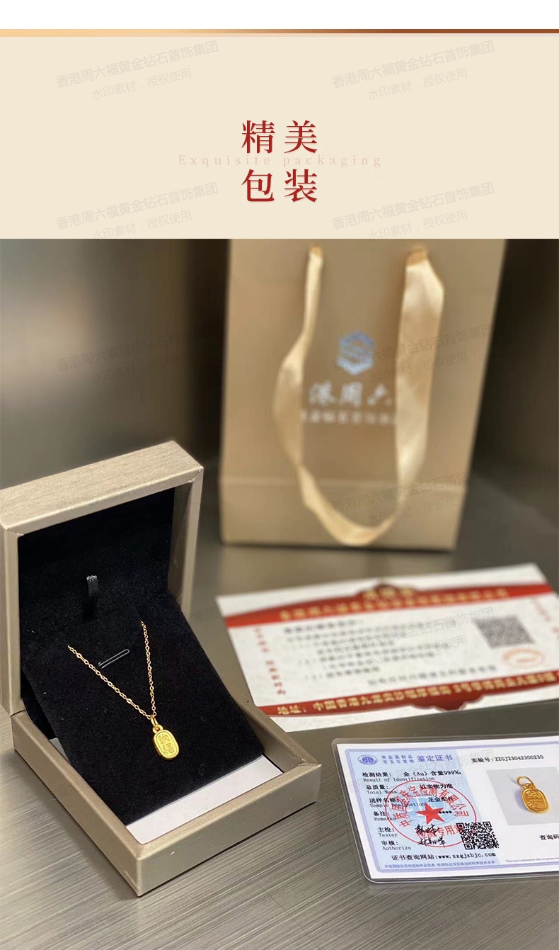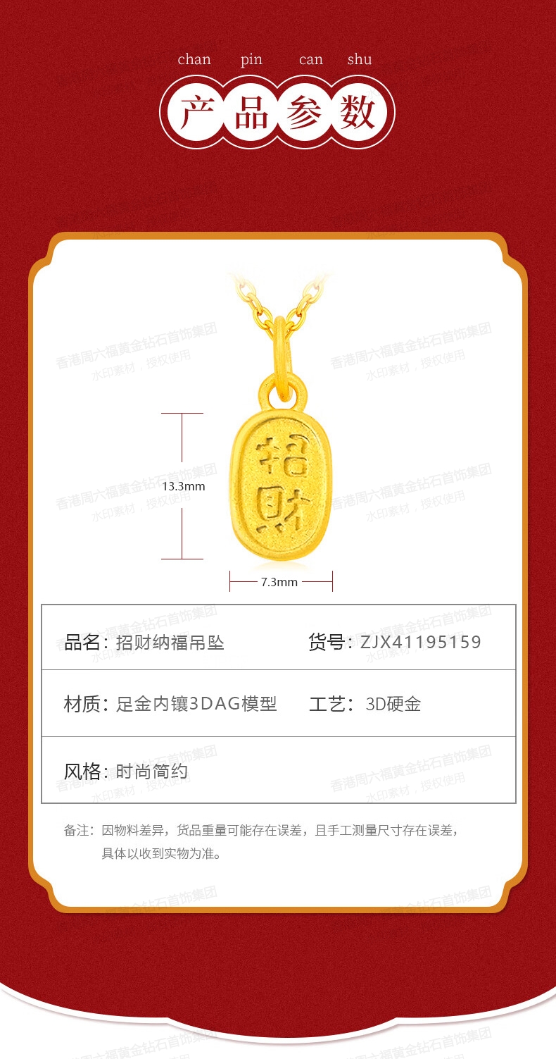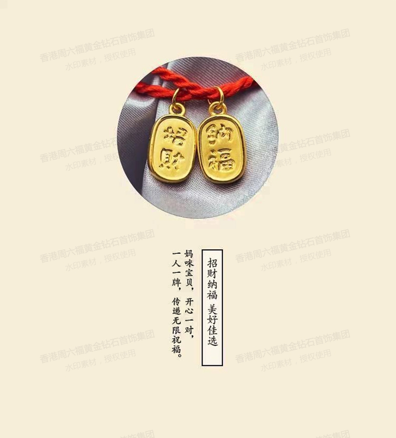商品名称:香港周六福5G黄金-足金招财纳福吊坠【材质:足金含约:0.1g 内镶3DAG模型】