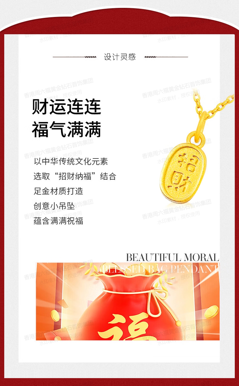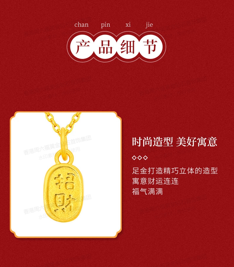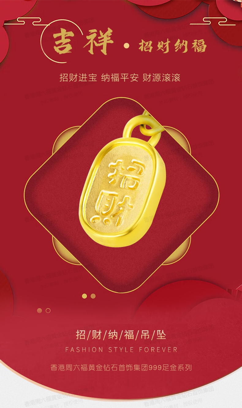 香港周六福5G黄金-足金招财纳福吊坠【材质:足金含约:0.1g 内镶3DAG模型】