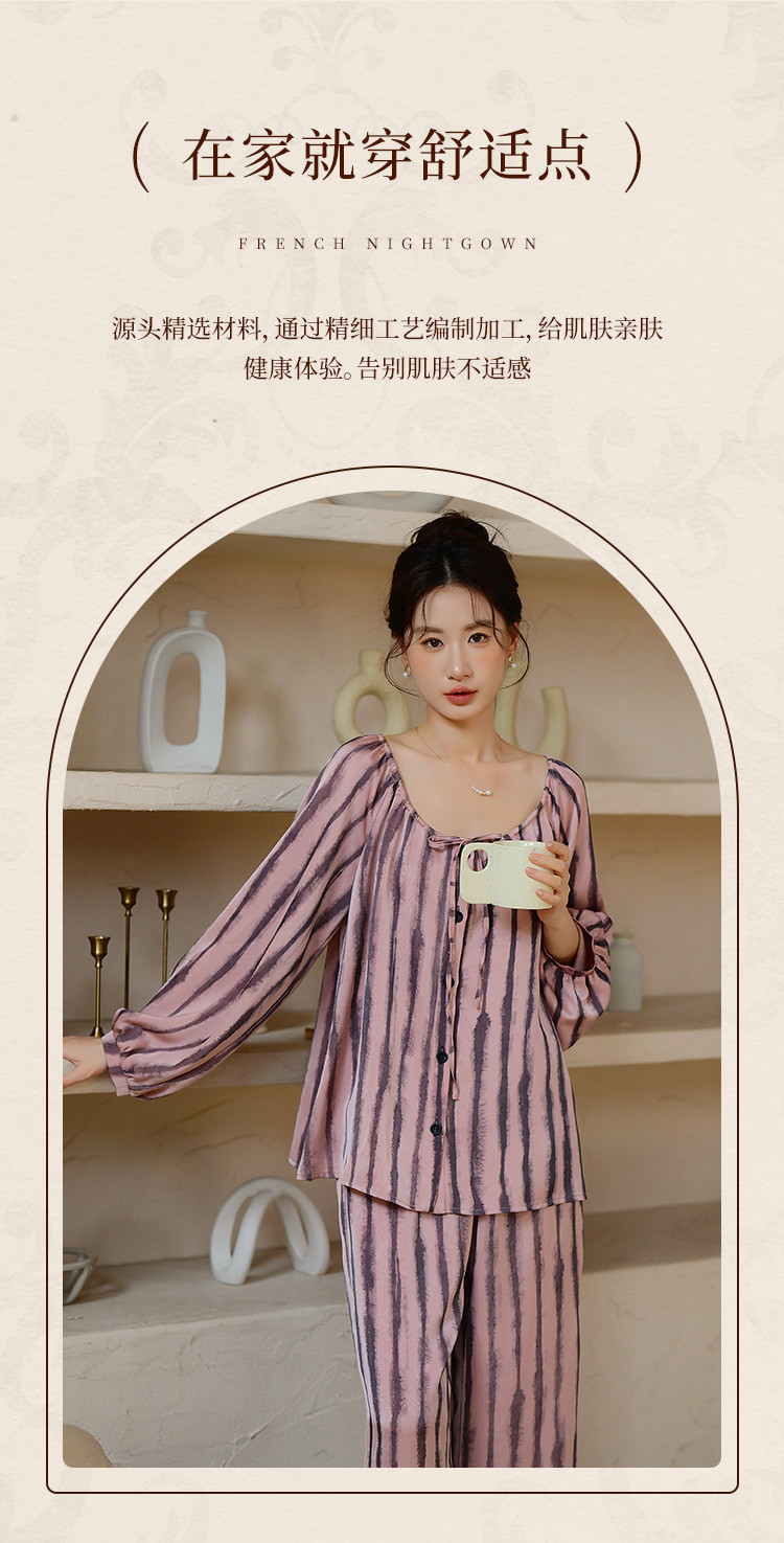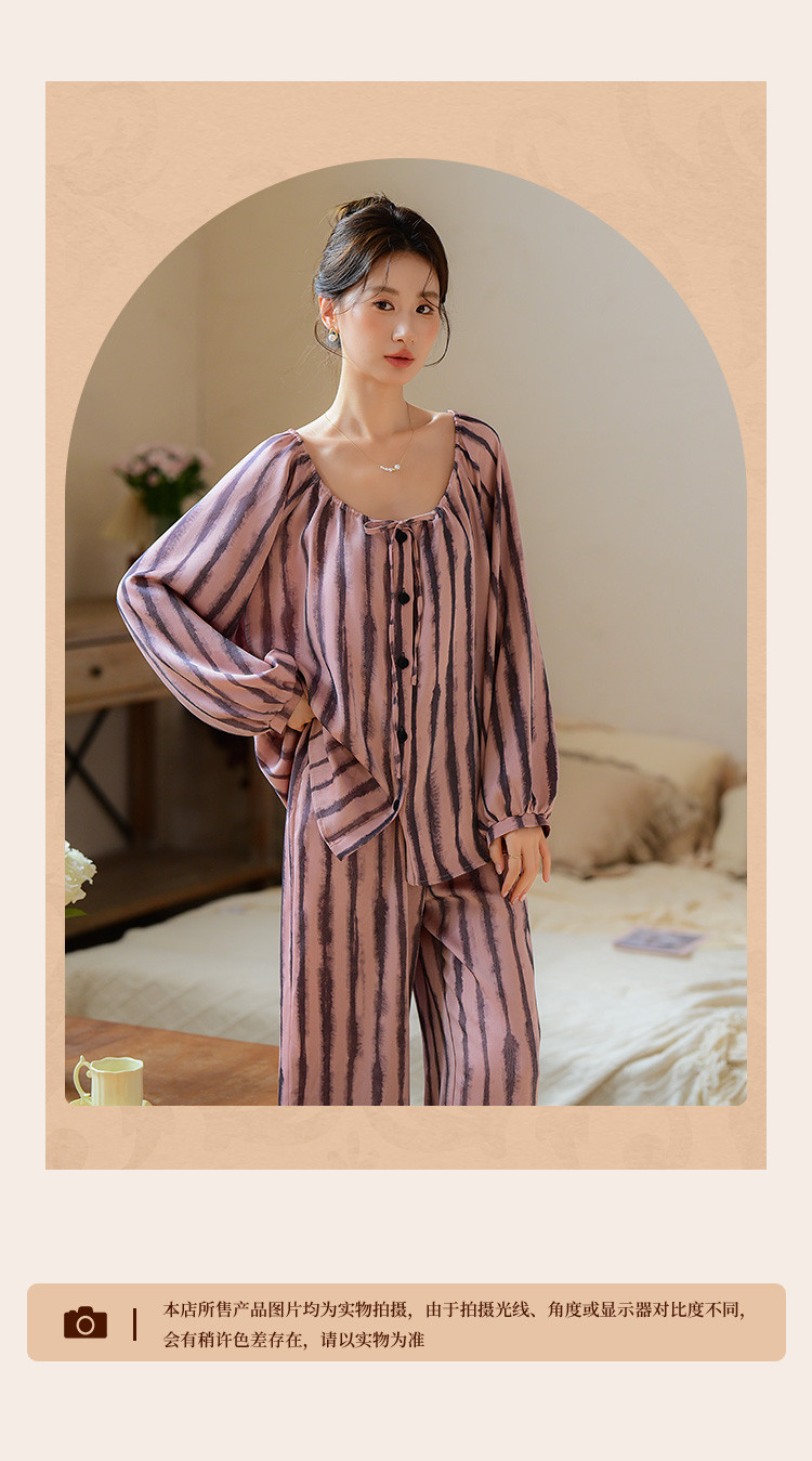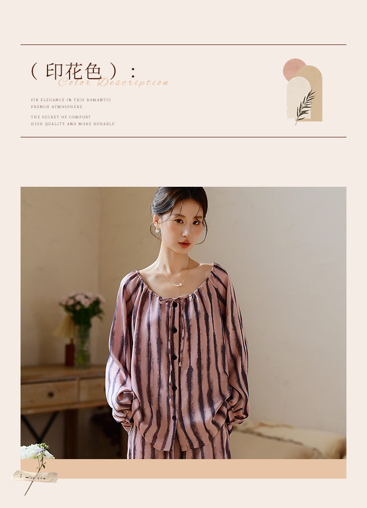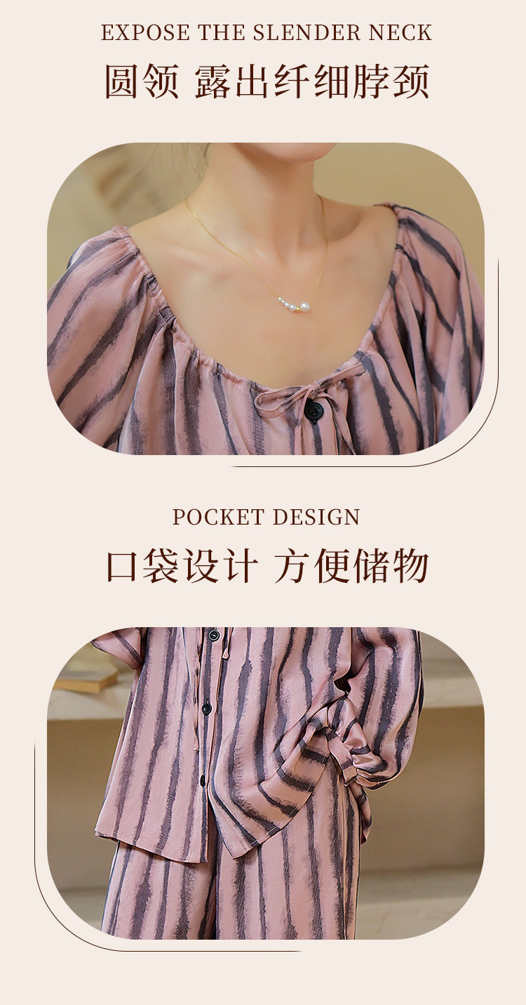 商品名称:【时尚条纹】高级感冰丝缎睡衣女春夏款法式优雅家居服套装可外穿 234699
