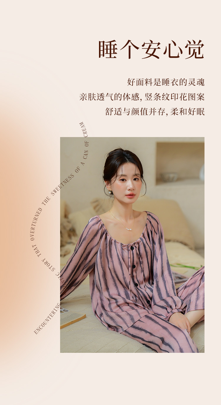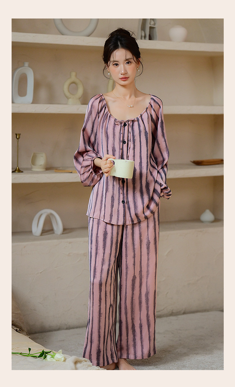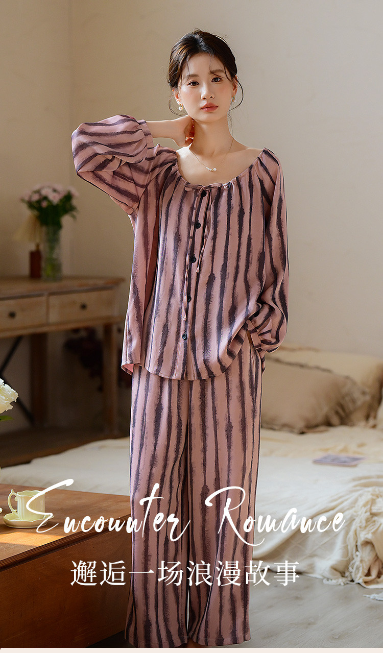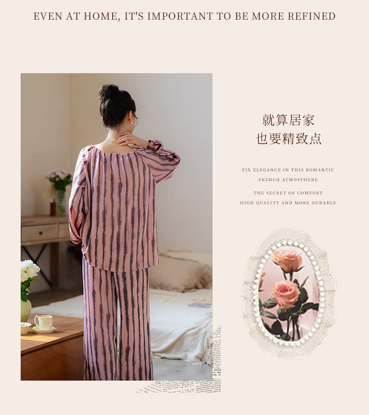 商品名称:【时尚条纹】高级感冰丝缎睡衣女春夏款法式优雅家居服套装可外穿 234699