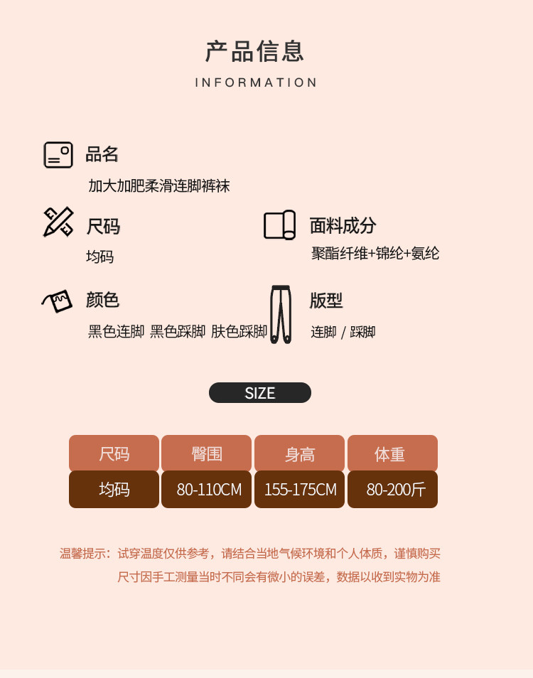 商品名称:【80-200斤可穿光腿神器】加肥加大显瘦不掉裆连脚踩脚裤袜 727070