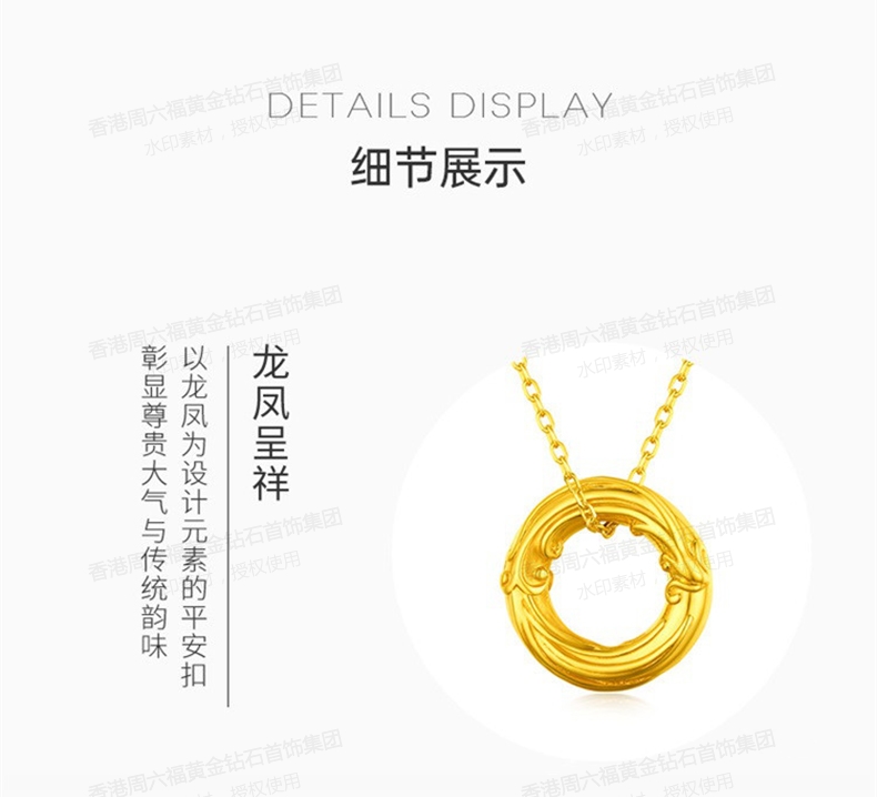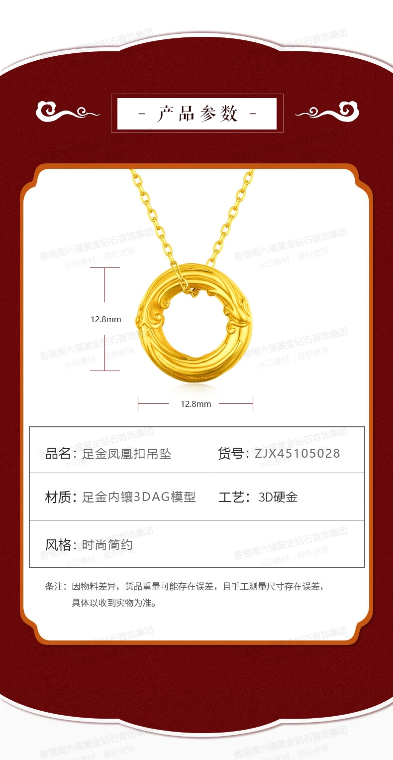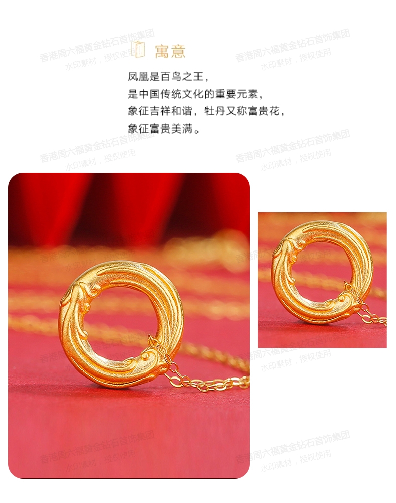 商品名称:香港周六福5G黄金-足金凤凰扣吊坠【材质:足金含约:0.1g 内镶3DAG模型】